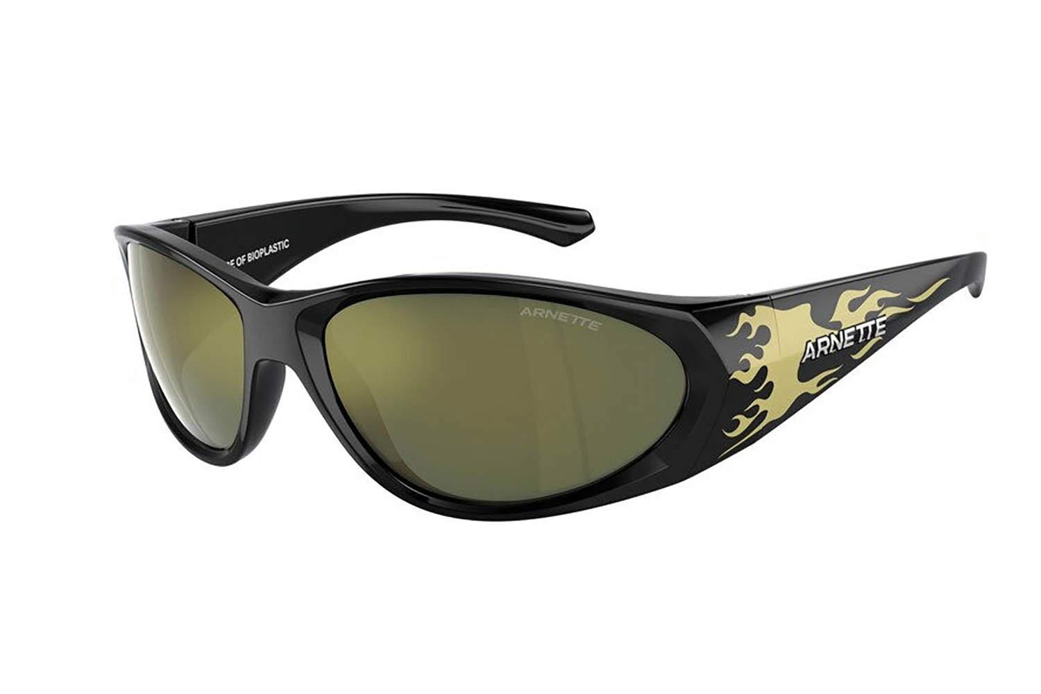 62 Arnette 4342 ILUM 2.0 29476R 62, Τετράγωνο σκελετός Injected, Μαύρο, Black Black/Gold Flames, φακοί Σκούρο Πράσινο με Πετρόλ Καθρέφτη polycarbonate - Dark Green Mirror Petrol, Ανδρικό, Full Rim, High Bridge Fit γυαλιά ηλίου Ανδρικό