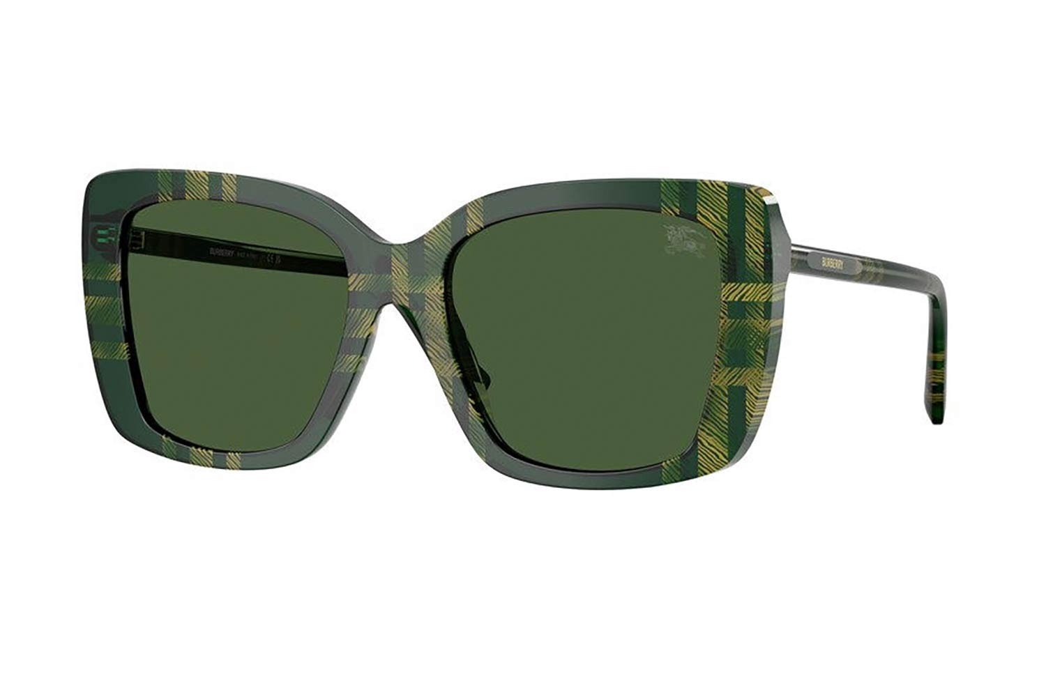 54 Burberry 4456 416971 54, Τετράγωνο σκελετός Acetate, Πράσινο, Green Check Green, φακοί Σκούρο Πράσινο Βιολογικό Πολυαμίδιο - Dark Green, Γυναικείο, half rim - nylor, High Bridge Fit γυαλιά ηλίου Γυναικείο