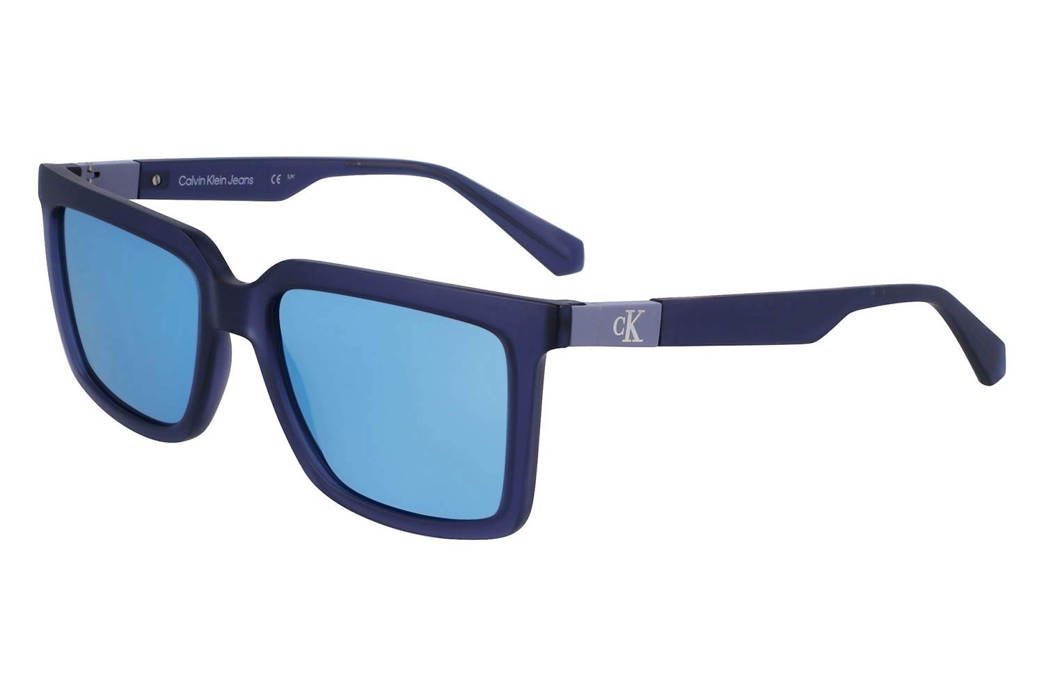 55 CALVIN-KLEIN-JEANS CKJ23659S 050 55, Τετράγωνο σκελετός acetate, Μπλε ματ, φακοί μπλε καθρεφτη, Ανδρικό, Full Rim, 0 γυαλιά ηλίου Ανδρικό