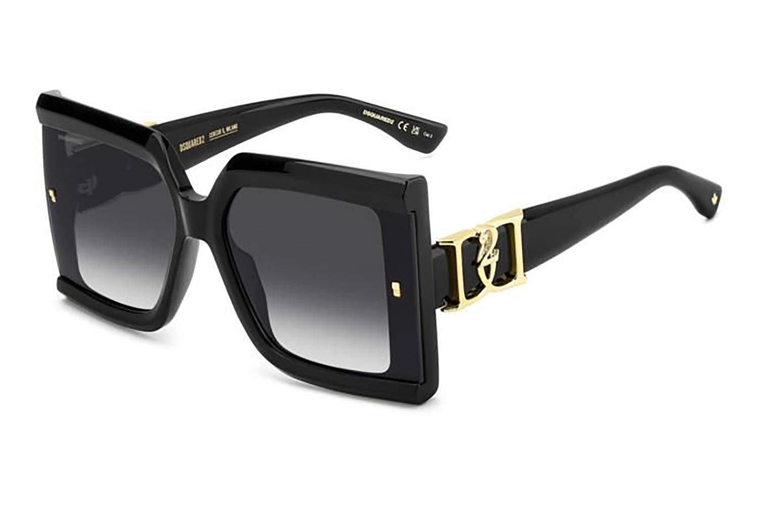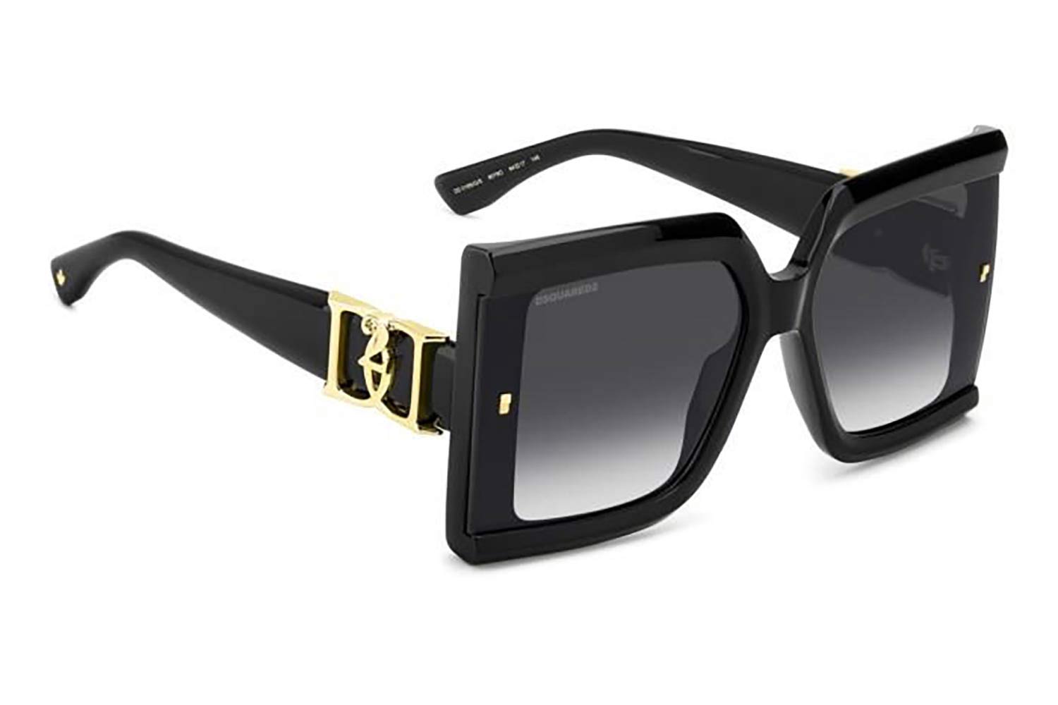 64 DSQUARED2 D2 0185GS 807 9O 64, Τετράγωνο σκελετός Acetate, BLACK, φακοί DARK GREY SHADED, Γυναικείο, Full Rim, 0 γυαλιά ηλίου Γυναικείο