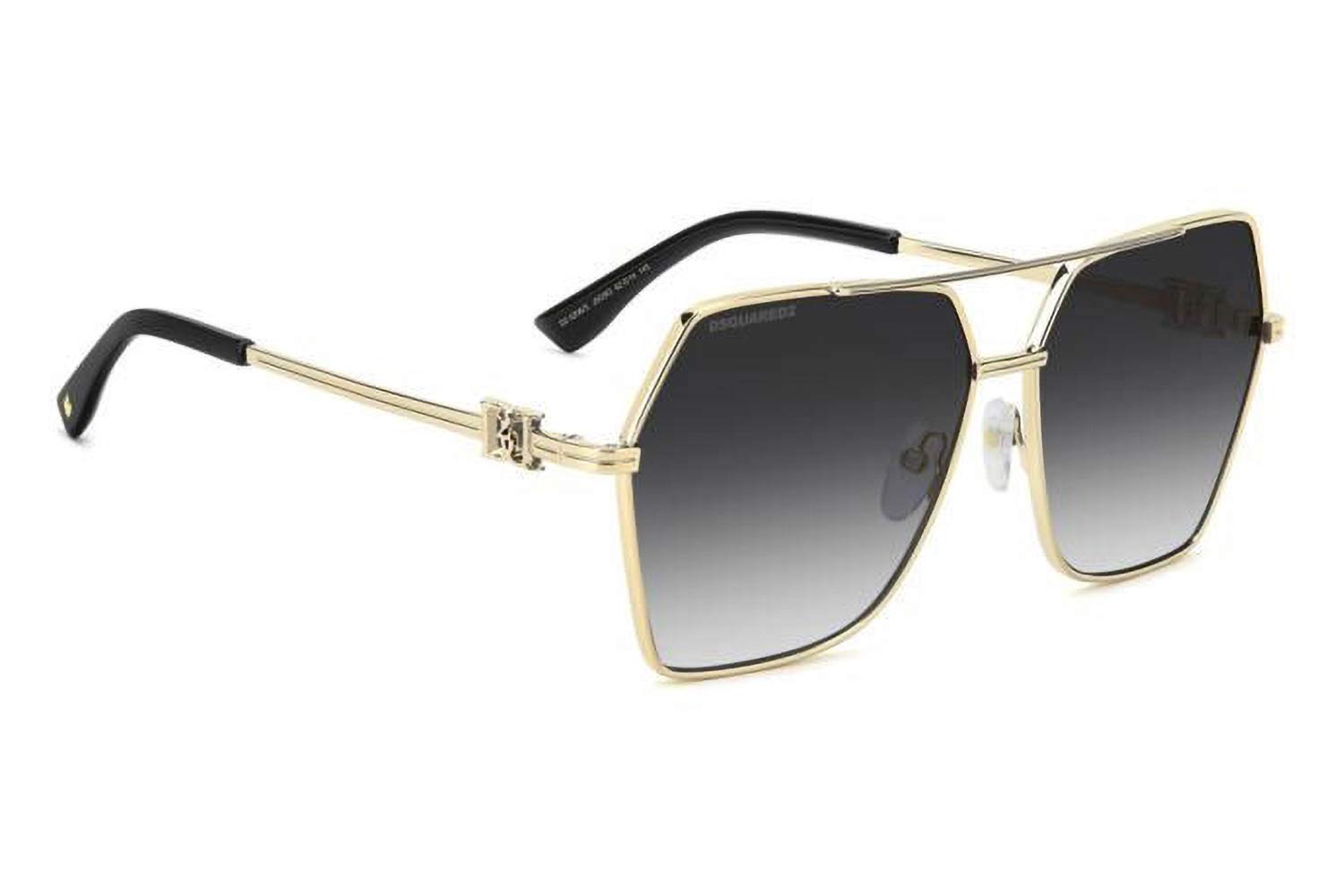 DSQUARED2 D2 0206S J5G 9O 62, Πολυγωνο σκελετός Μεταλλο, GOLD, φακοί DARK GREY SHADED, Γυναικείο, Full Rim, 0 γυαλιά ηλίου Γυναικείο