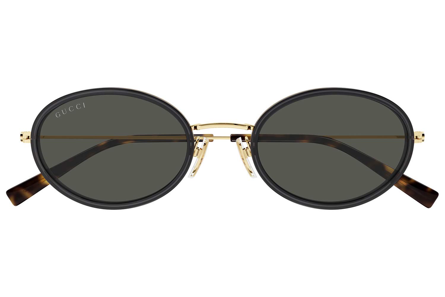 Gucci GG1980S 001 52, Oval σκελετός Μεταλλο, χρυσό μαυρο, φακοί Γκρι, Γυναικείο, Full Rim, 0 γυαλιά ηλίου Carry over concept in a combi development featuring a light metal construction with a thin acetate front embellishment. Slim oval shape. Interlocking G Logo. Elegant and playful colors in both silver, gold and rose-gold galvanic. Γυναικείο