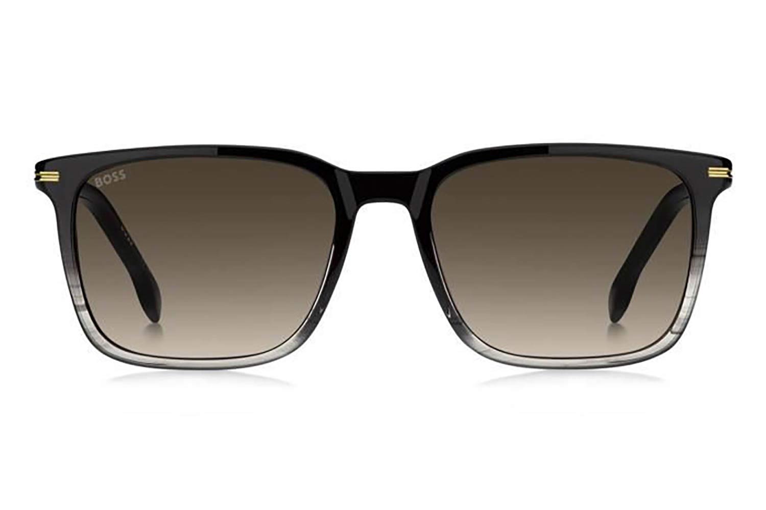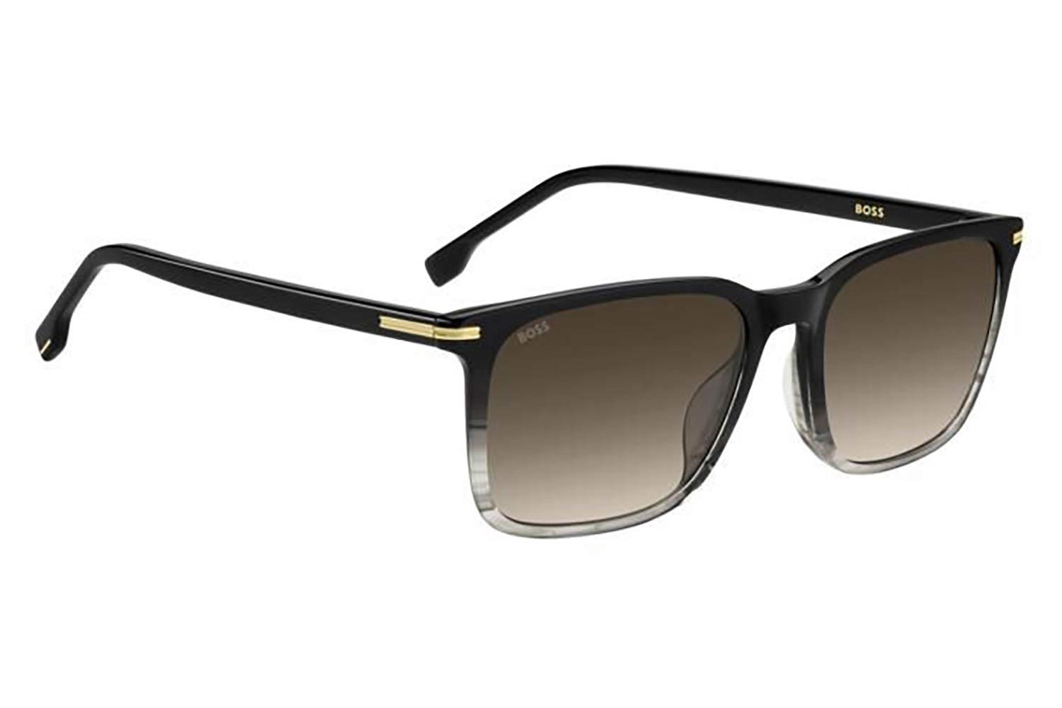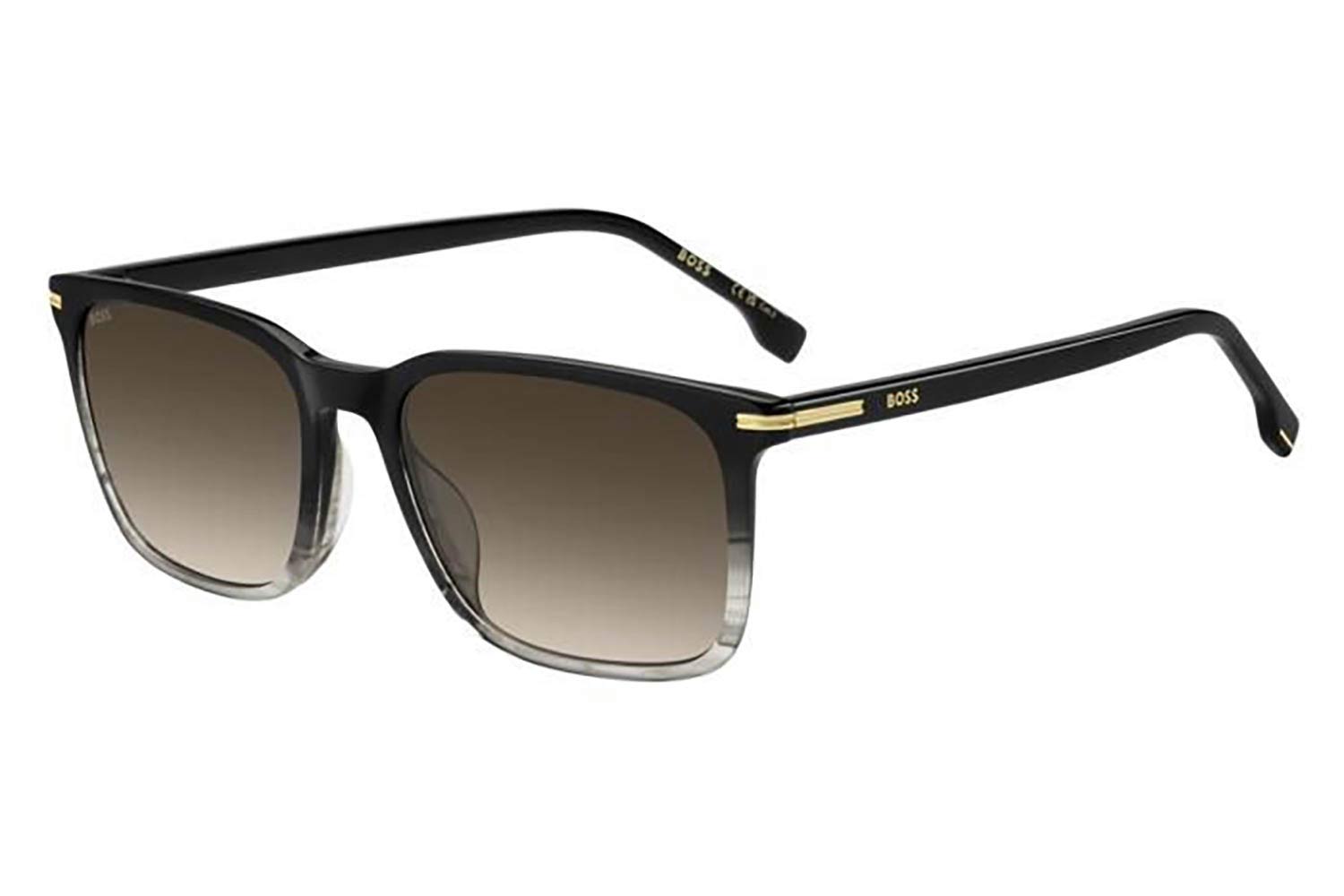 55 HUGO-BOSS BOSS 1749GS EDM HA 55, Τετράγωνο σκελετός Acetate, BLACK SHADED GREY, φακοί BROWN SHADED, Ανδρικό, FULL RIM, 0 γυαλιά ηλίου Ανδρικό