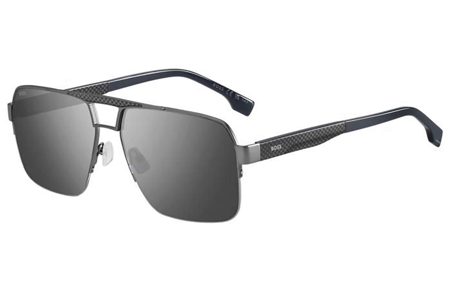 60 HUGO-BOSS BOSS 1767S R80 T4 60, Τετράγωνο σκελετός Μεταλλο, MATTE DARK RUTHENIUM, φακοί SILVER MIRROR, Ανδρικό, half rim - nylor, 0 γυαλιά ηλίου Ανδρικό