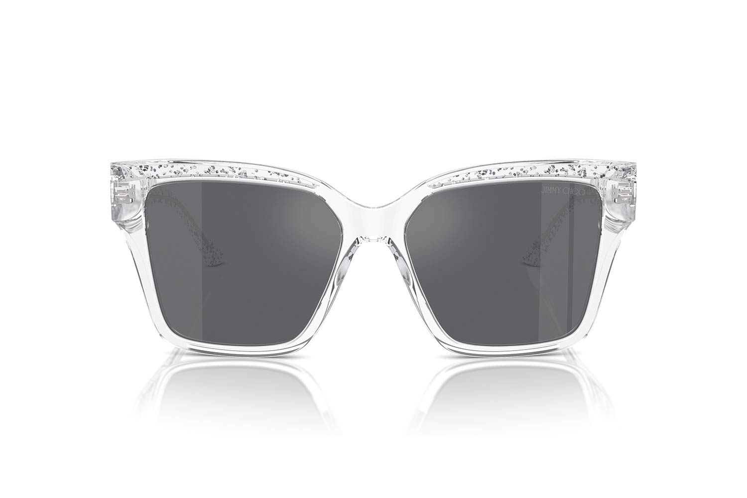 55 Jimmy-Choo 5003 50376G 55, Pillow σκελετός Acetate, Διαφανές, Transparent Crystal Glitter, φακοί Γκρι με Ασημί Καθρέφτη οργανικοί - Grey Mirror Silver, Γυναικείο, Full Rim, High Bridge Fit γυαλιά ηλίου Γυναικείο