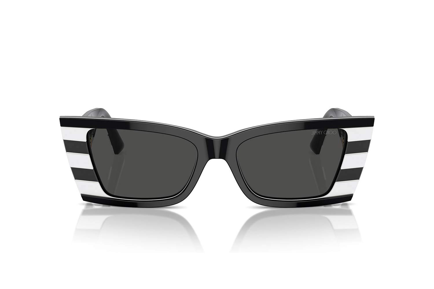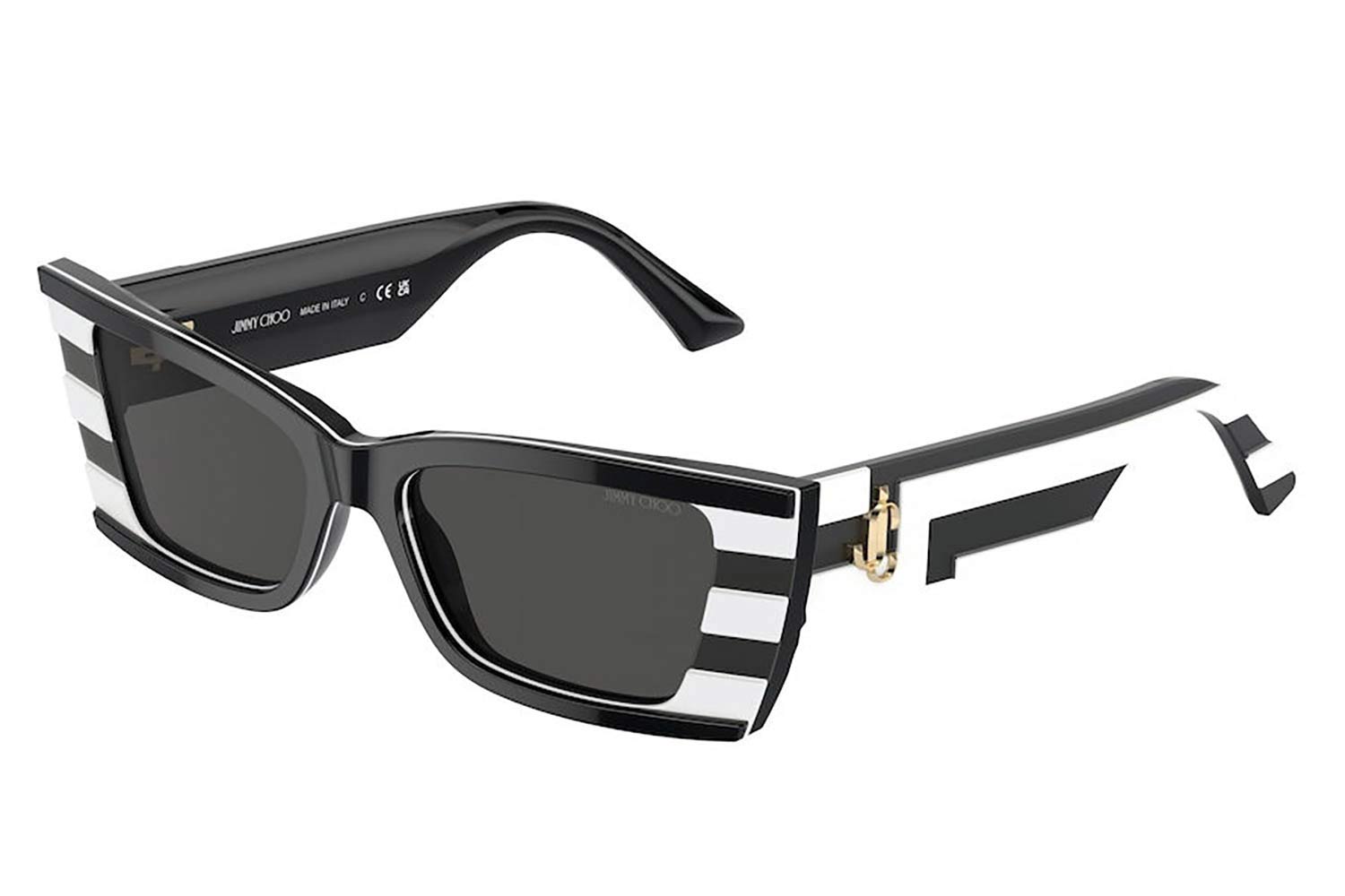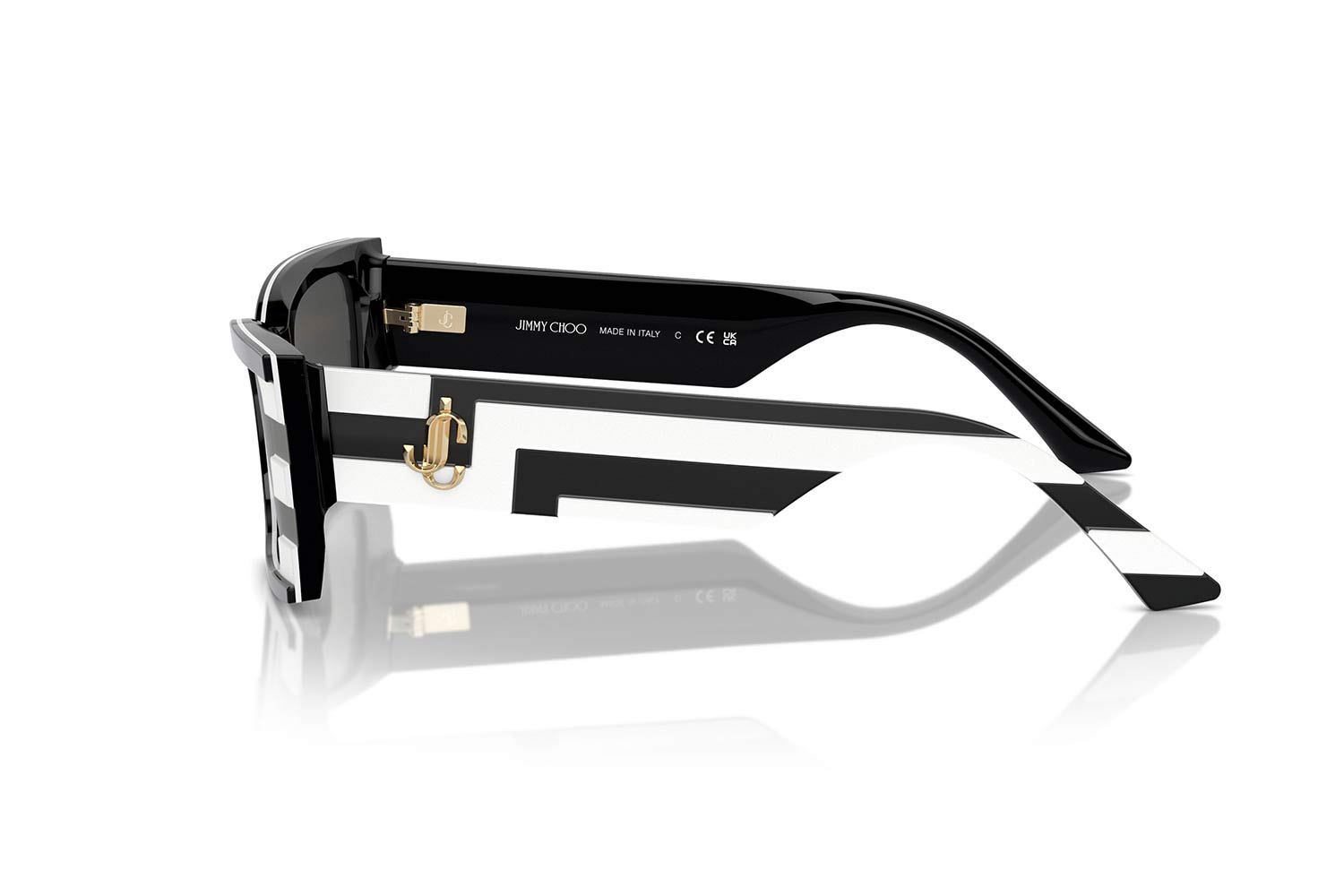 53 Jimmy-Choo 5009 502987 53, Τετράγωνο σκελετός Acetate, Άσπρο, White Black And White, φακοί Σκούρο Γκρι Βιολογικό Πολυαμίδιο - Dark Grey, Γυναικείο, Full Rim, High Bridge Fit γυαλιά ηλίου Γυναικείο