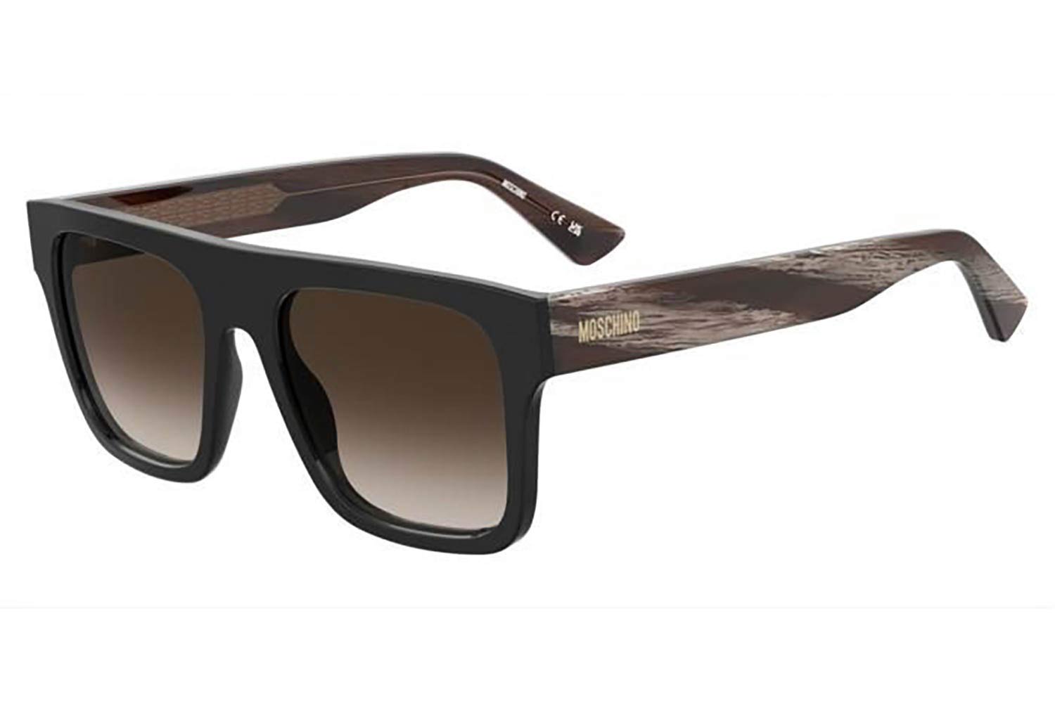 55 MOSCHINO MOS201S 37N HA 55, Τετράγωνο σκελετός Acetate, BLACK HORN, φακοί BROWN SHADED, Ανδρικό, Full Rim, 0 γυαλιά ηλίου Ανδρικό