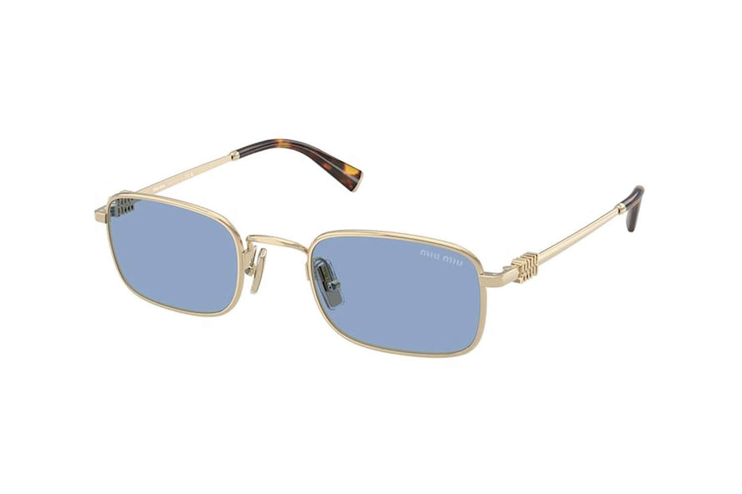 49 Miu-Miu A53S ZVN60O 49, Τετράγωνο σκελετός Μεταλλο, Χρυσό, Gold Pale Gold, φακοί Ανοιχτό Μπλε Βιολογικό Πολυαμίδιο - Light Blue, Γυναικείο, half rim - nylor, Adjustable Nosepads γυαλιά ηλίου Γυναικείο