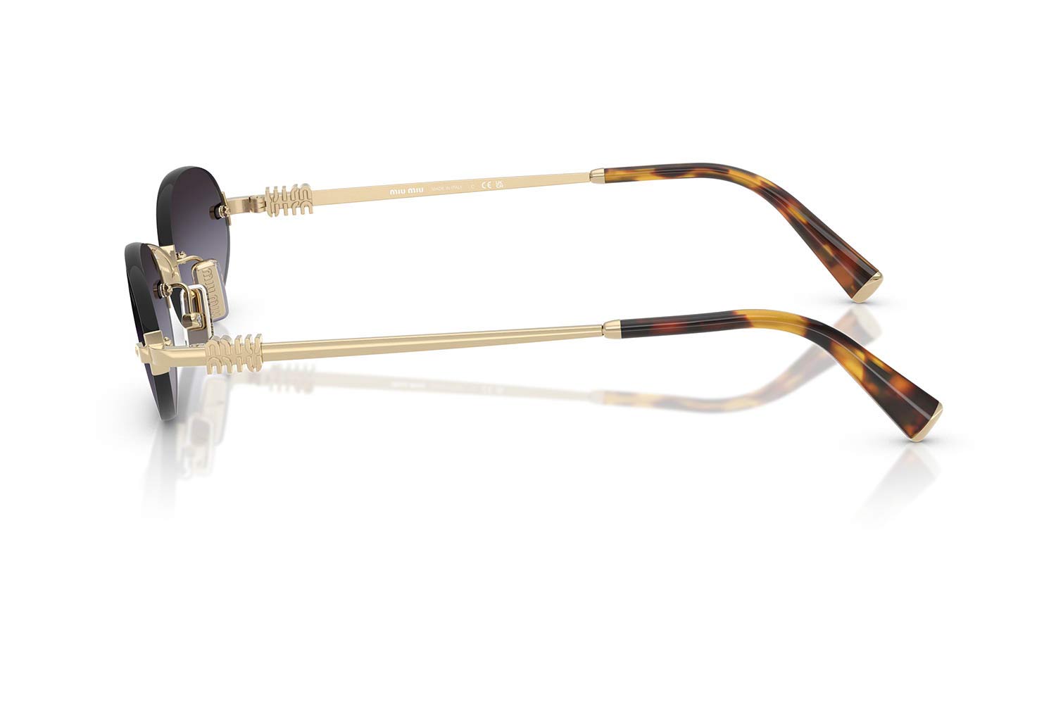 Miu-Miu A54S ZVN5D1 51, Oval σκελετός Μεταλλο, Χρυσό, Gold Pale Gold, φακοί Γκρι Ντεγκραντέ Πολυαμίδιο - Grey Gradient, Γυναικείο, Rimless, Adjustable Nosepads γυαλιά ηλίου Γυναικείο