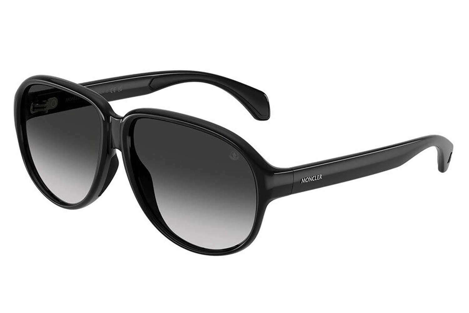 60 Moncler 8001 HALCYONNE 50013C 60, Aviator σκελετός Injected, Μαύρο, Black Shiny Black, φακοί Ανοιχτό Γκρι Ντεγκραντέ Μαύρο Βιολογικό Πολυαμίδιο - Light Grey Gradient Black, Unisex, Full Rim, High Bridge Fit γυαλιά ηλίου Unisex