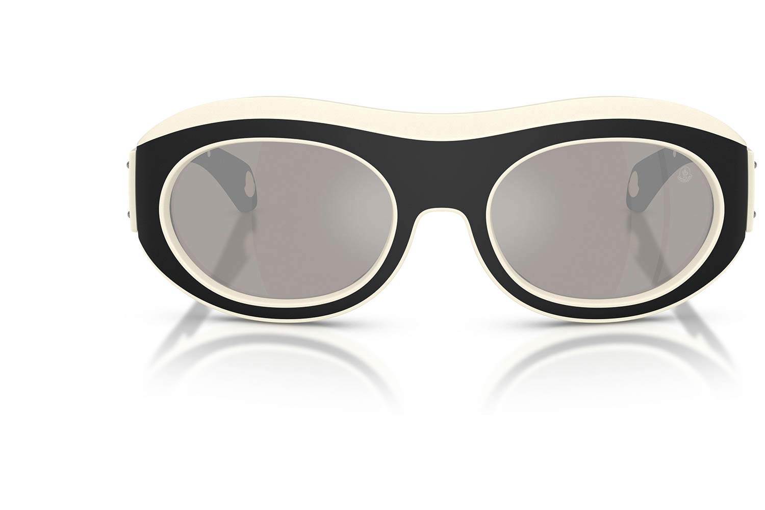 54 Moncler 8015U RAMILLON 50026G 54, Oval σκελετός Injected, Άσπρο, White Matte Butter/Matte Black, φακοί Ασημί Καθρέφτης Πολυαμίδιο - Mirror Silver, Unisex, Full Rim, Universal Fit γυαλιά ηλίου Unisex