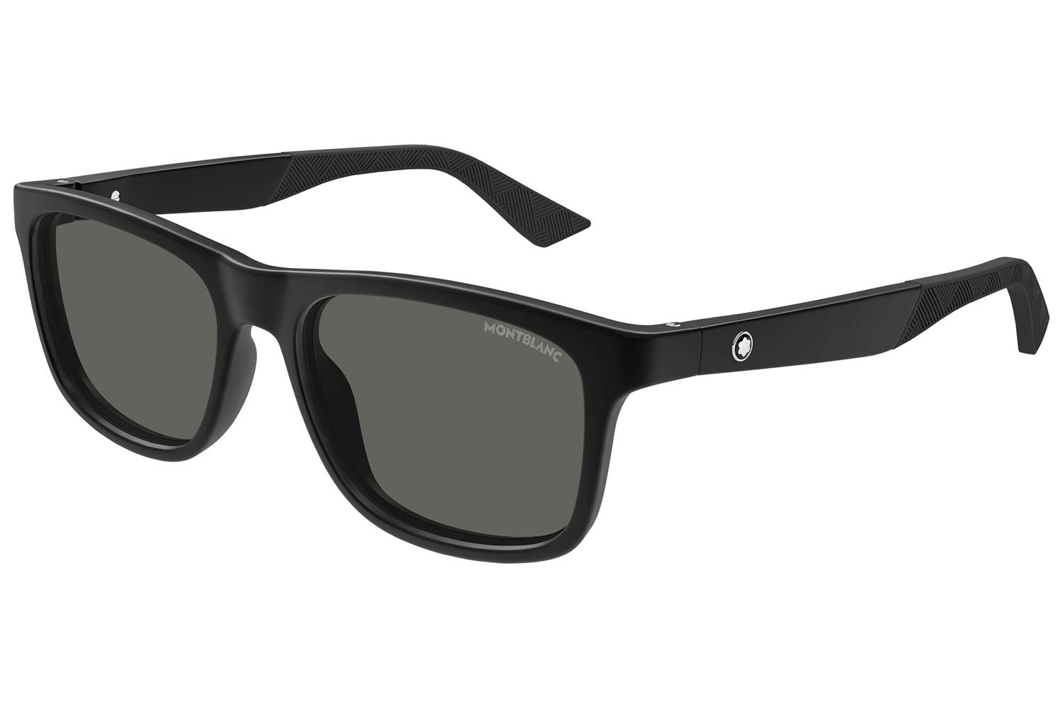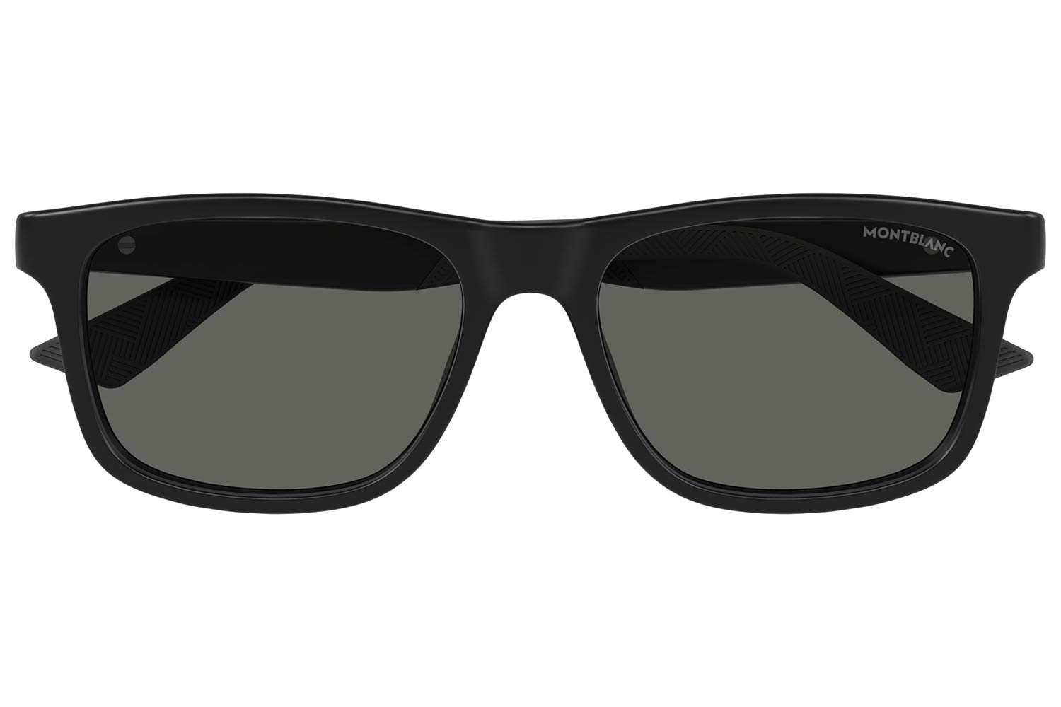 Mont-Blanc MB0432S 002 55, Τετράγωνο σκελετός acetate, μαύρο, φακοί γκριζο smoke, Ανδρικό, Full Rim, 0 γυαλιά ηλίου Rectangular sun style belonging to the Extreme Injection family part of the Extreme pillar, aimed at targeting active lifestyles. Fully injected construction with rubber temple tips enriched with the Extreme 3.0 pattern to convey the sporty attitude. The branding element is represented by Montblanc's Snowcap emblem on temples. Sporty look and feel is conveid by masculine colors paired with rubber details and deep color lens. Ανδρικό
