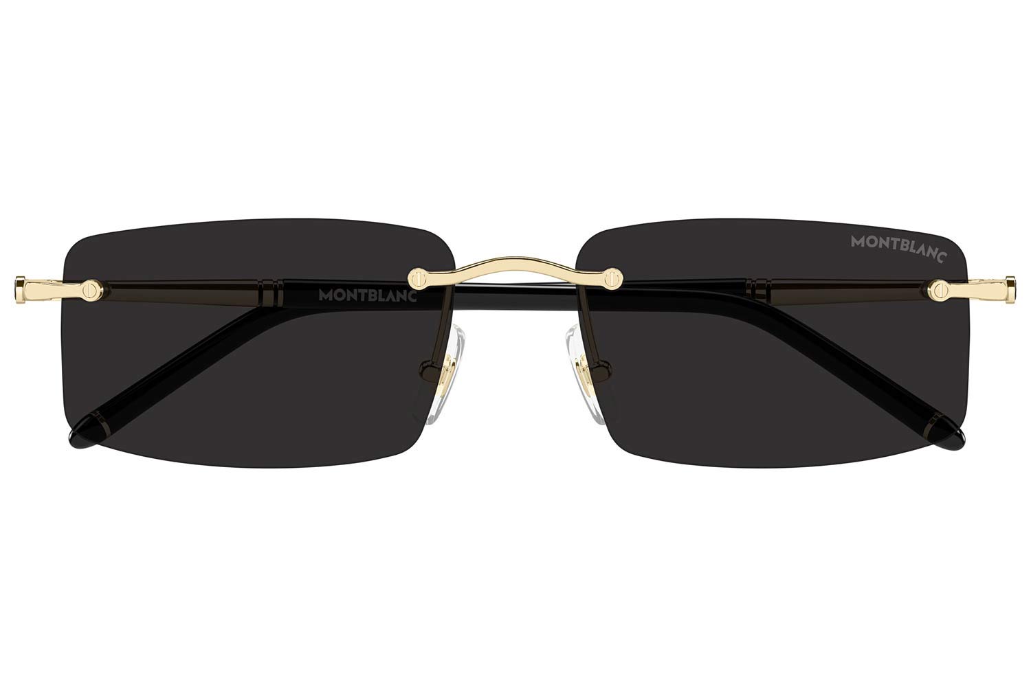 Mont-Blanc MB0443S 001 56, Τετράγωνο σκελετός Μεταλλο, χρυσό, φακοί γκριζο σκούρο, Ανδρικό, Rimless, 0 γυαλιά ηλίου New rimless rectangular shape belonging to best selling Pen family, enriched with an integrated flex hinge. The temple design is inspired by the Meisterstuck silhouette and replicates all its iconic details. The style is available in Montblanc's classic masculine colors, with both gold and silver constructions. Ανδρικό
