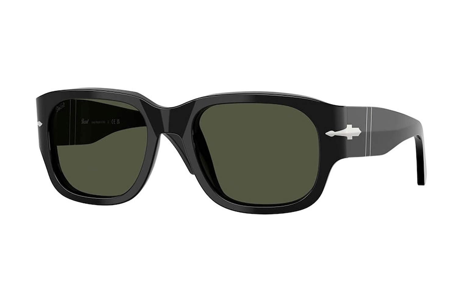 Περιγραφή: 52 Persol 3380S 95/31 52, Τετράγωνο σκελετός Acetate, Μαύρο, Black Black, φακοί Πράσινο Διαφανές - Green, Unisex, Full Rim, High Bridge Fit γυαλιά ηλίου Unisex
