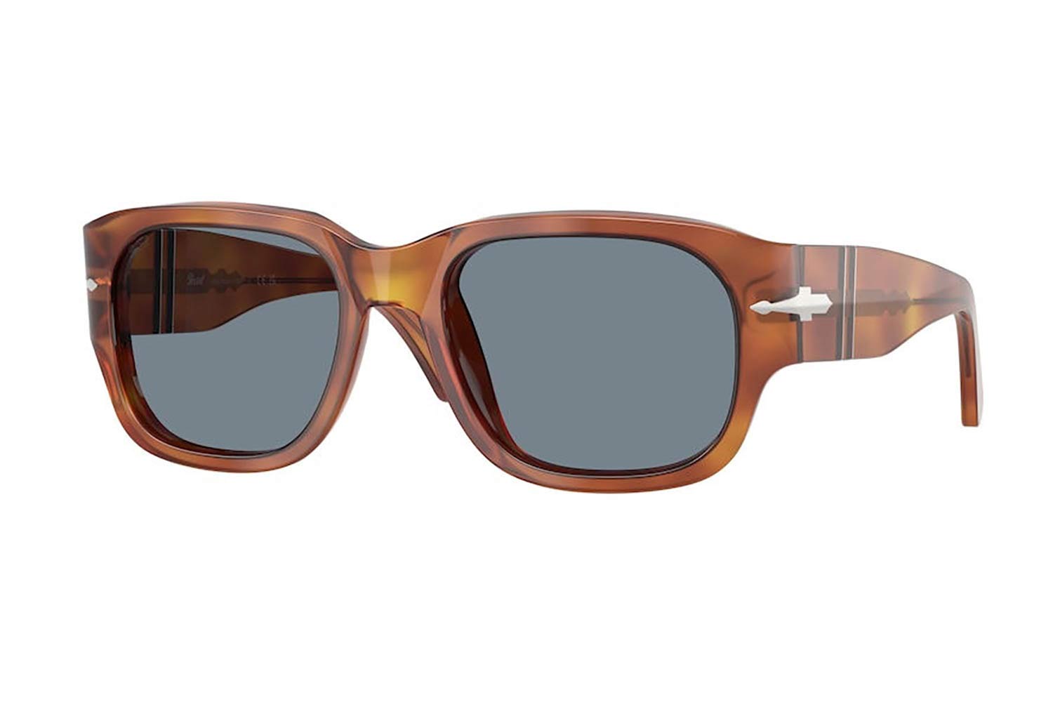 Περιγραφή: 55 Persol 3380S 96/56 55, Τετράγωνο σκελετός Acetate, Καφέ, Brown Terra Di Siena, φακοί Ανοιχτό Μπλε Διαφανές - Light Blue, Unisex, Full Rim, High Bridge Fit γυαλιά ηλίου Unisex
