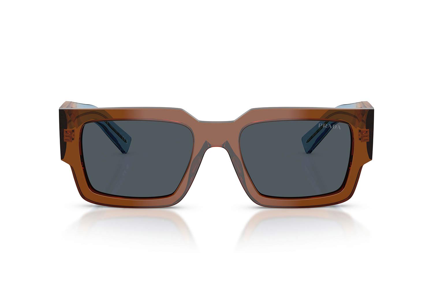 54 Prada B17S 25F70B 54, Τετράγωνο σκελετός Acetate, Καφέ, Brown Chocolate, φακοί Σκούρο Γκρι Βιολογικό Πολυαμίδιο - Dark Grey, Ανδρικό, Full Rim, High Bridge Fit γυαλιά ηλίου Ανδρικό