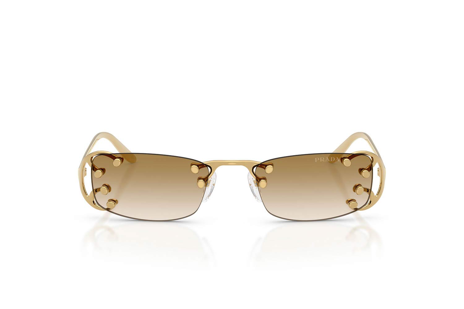 52 Prada C57S 29H30V 52, Τετράγωνο σκελετός Μεταλλο, Χρυσό, Gold Oro Pallido Nouveau, φακοί Διαφανές Ντεγκραντέ Ανοιχτό Καφέ Βιολογικό Πολυαμίδιο - Clear Gradient Light Brown, Γυναικείο, Rimless - Griff, Adjustable Nosepads γυαλιά ηλίου Γυναικείο
