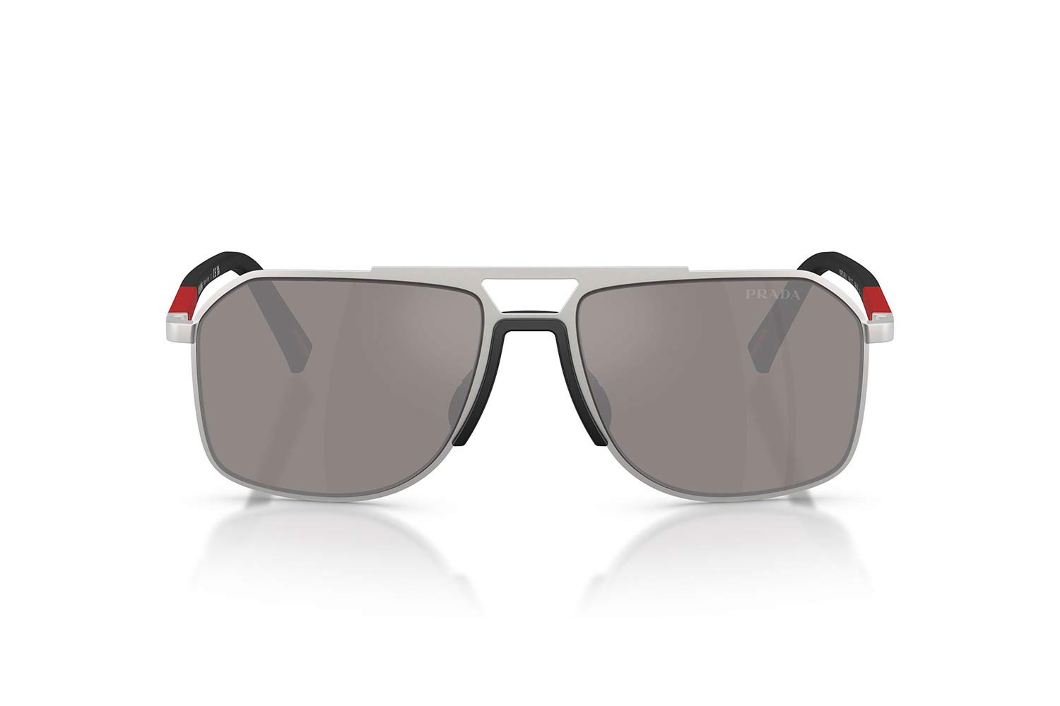56 Prada-Linea-Rossa B51S 18X80I 56, Aviator σκελετός Μεταλλο, Ασημί, Silver Matte Silver, φακοί Μωβ καφέ καθρέφτης ασημί Πολυαμίδιο - Purple Brown Mirror Silver, Ανδρικό, Full Rim, Adjustable Nosepads γυαλιά ηλίου Ανδρικό