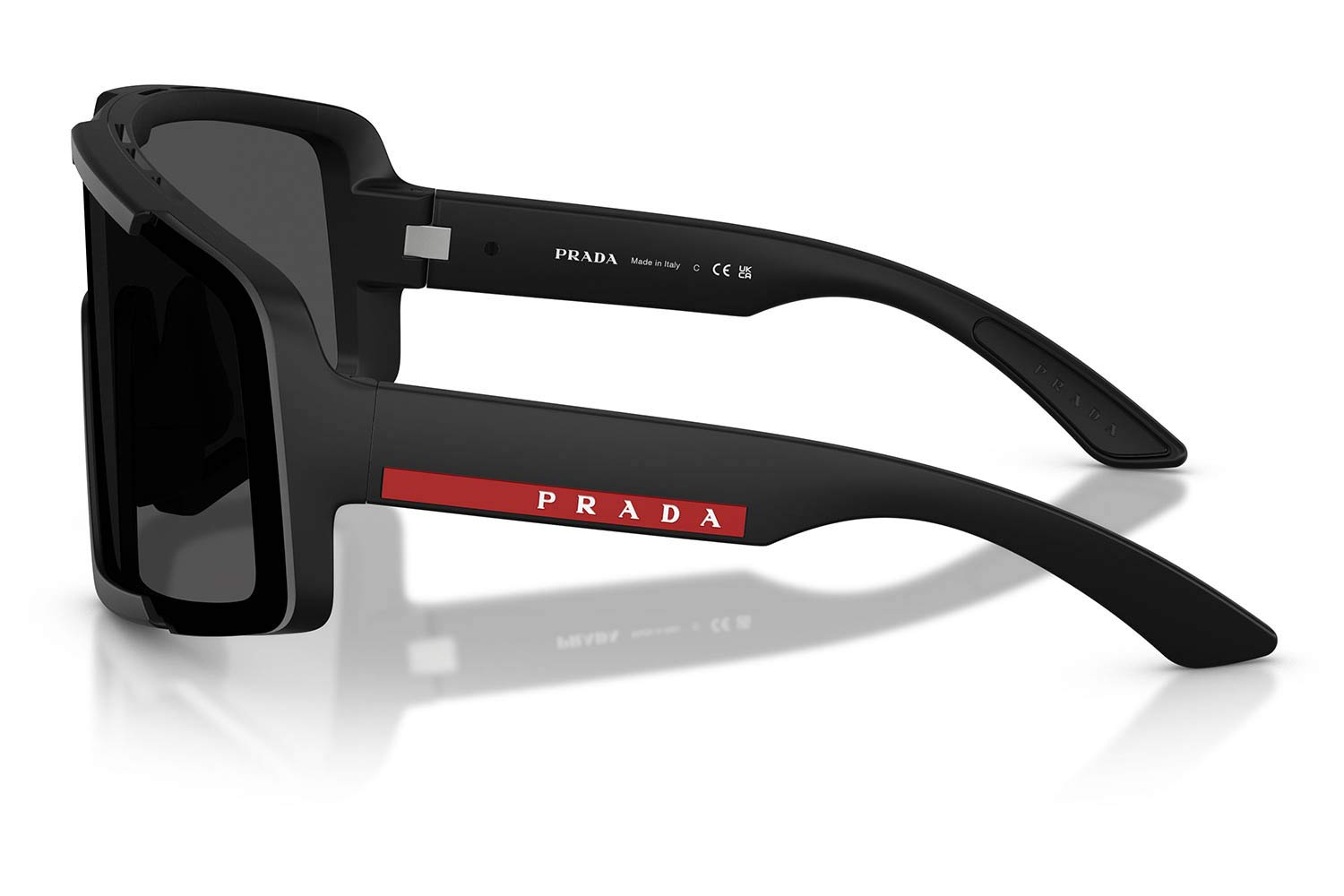 Το χαρακτηριστικό shield / μάσκα σχήμα προσφέρει μεγάλη κάλυψη και φουτουριστικό στυλ, ενώ η ελαφριά κατασκευή εξασφαλίζει άνετη εφαρμογή για καθημερινή χρήση. Η σειρά Linea Rossa αντιπροσωπεύει τον σπορ χαρακτήρα της Prada, με premium υλικά και εργονομικό σχεδιασμό για μέγιστη άνεση και σταθερότητα. :contentReference[oaicite:1]{index=1}