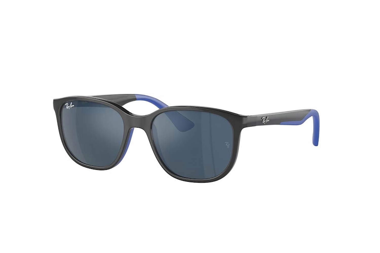 48 RAY-BAN JUNIOR 9078S 715155 48, Τετράγωνο σκελετός Injected, Γκρι, Grey Grey On Blue, φακοί Σκούρο Μπλε Βιολογικό Πολυαμίδιο - Dark Blue, Unisex, half rim - nylor, High Bridge Fit γυαλιά ηλίου Unisex