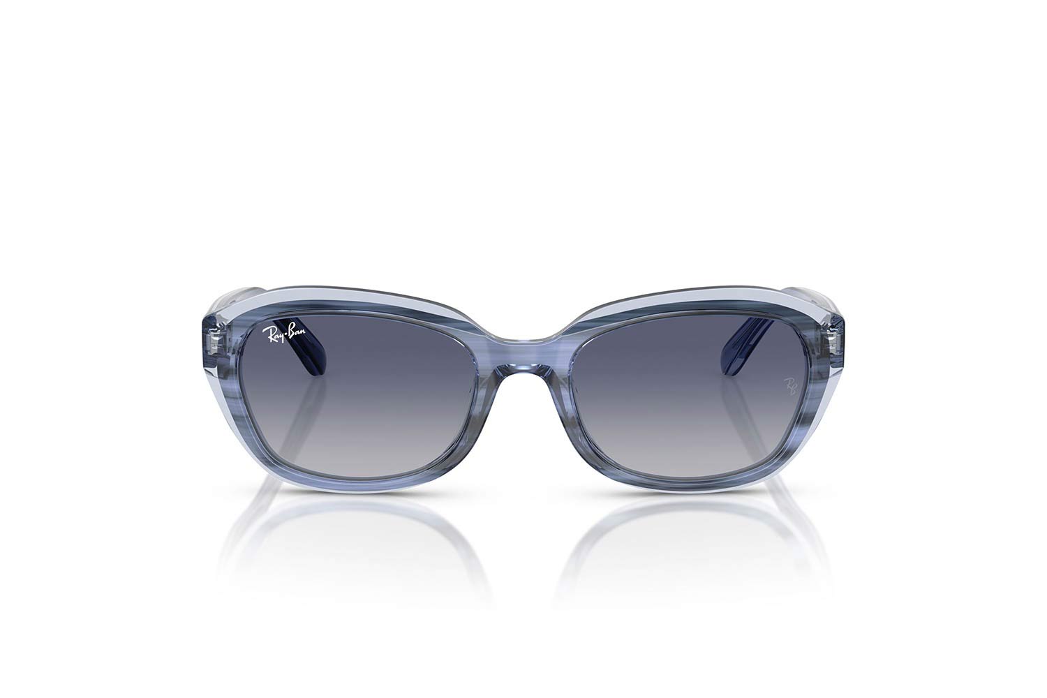 48 RAYBAN-JUNIOR 9081S 71764L 48, Ακανόνιστο σκελετός Acetate, Μπλε, Blue Striped Blue On Transparent Blue, φακοί Γκρι Ντεγκραντέ Μπλε Πολυαμίδιο - Grey Gradient Blue, Γυναικείο, half rim - nylor, High Bridge Fit γυαλιά ηλίου Γυναικείο