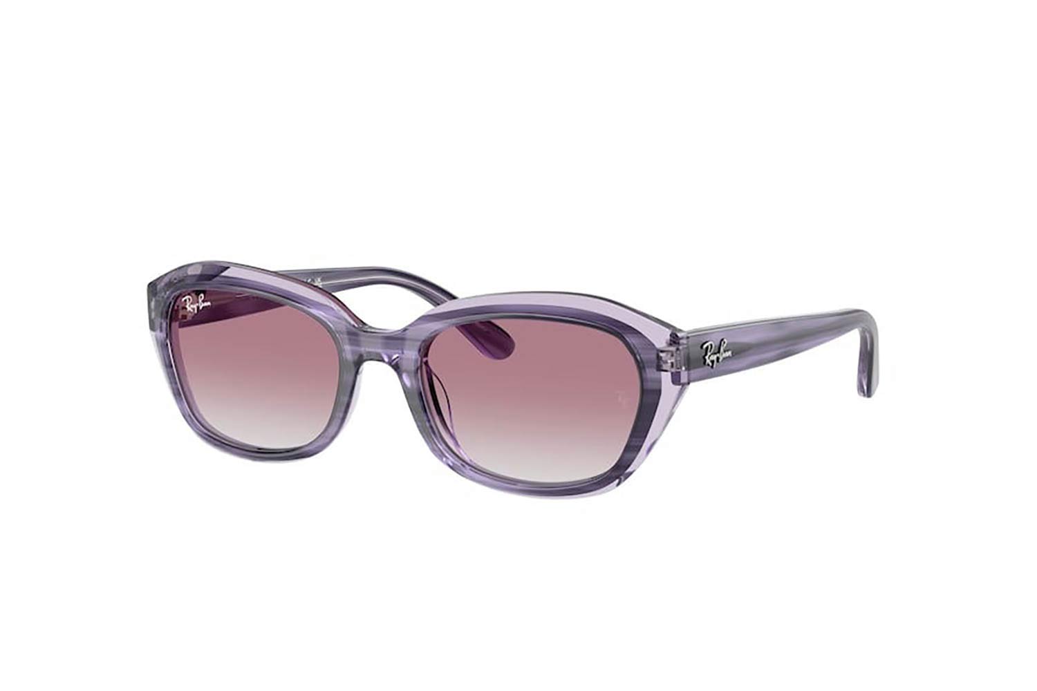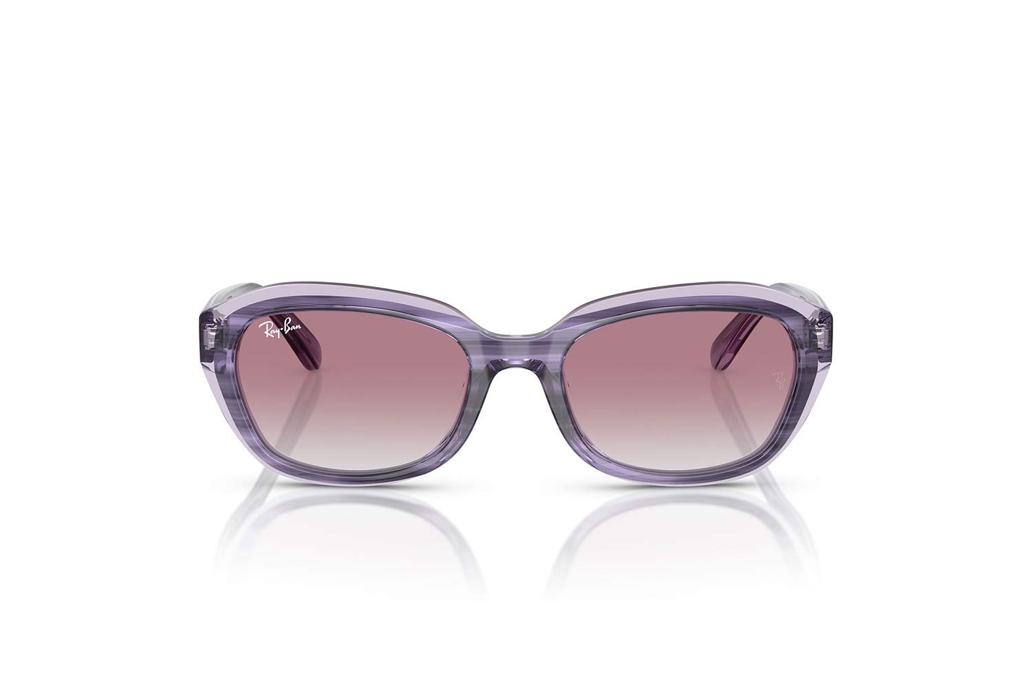 48 RAYBAN-JUNIOR 9081S 71748G 48, Ακανόνιστο σκελετός Acetate, Βιολετί, Violet Striped Violet On Transparent Violet, φακοί Γκρι Ντεγκραντέ - Grey Gradient Violet, Γυναικείο, half rim - nylor, High Bridge Fit γυαλιά ηλίου Γυναικείο