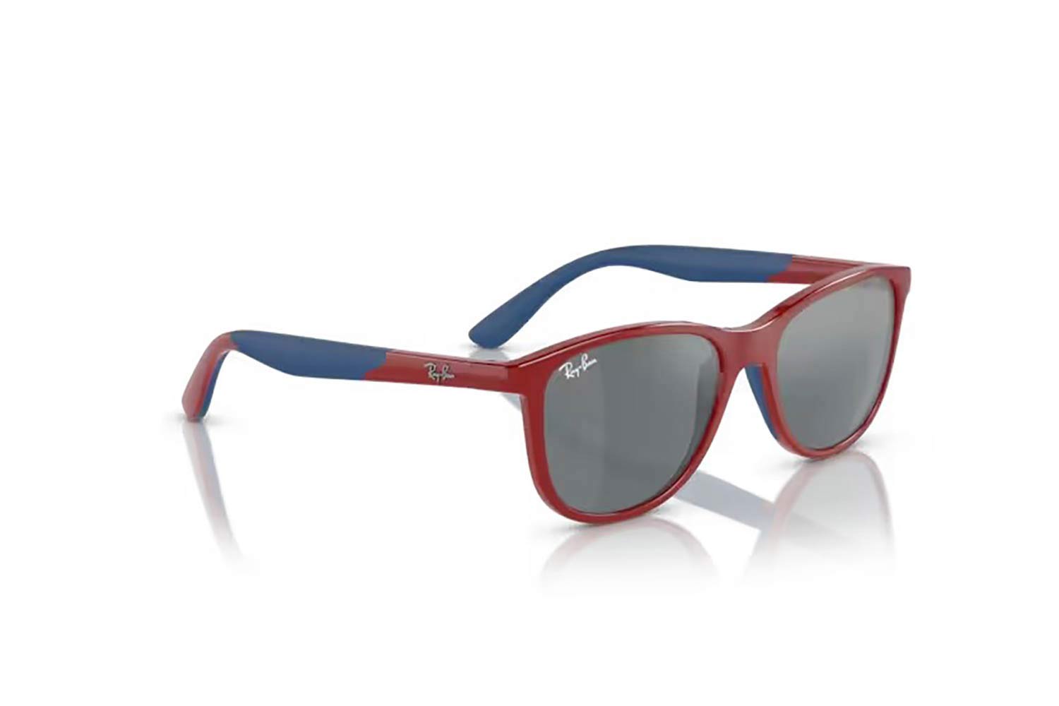 Περιγραφή: 49 Rayban-Junior 9077S 71606G 49, Τετράγωνο σκελετός Injected, Κόκκινο, Red Red On Blue, φακοί Γκρι Μαύρο οργανικοί - Grey Black, Unisex, Full Rim, High Bridge Fit γυαλιά ηλίου Παιδικό