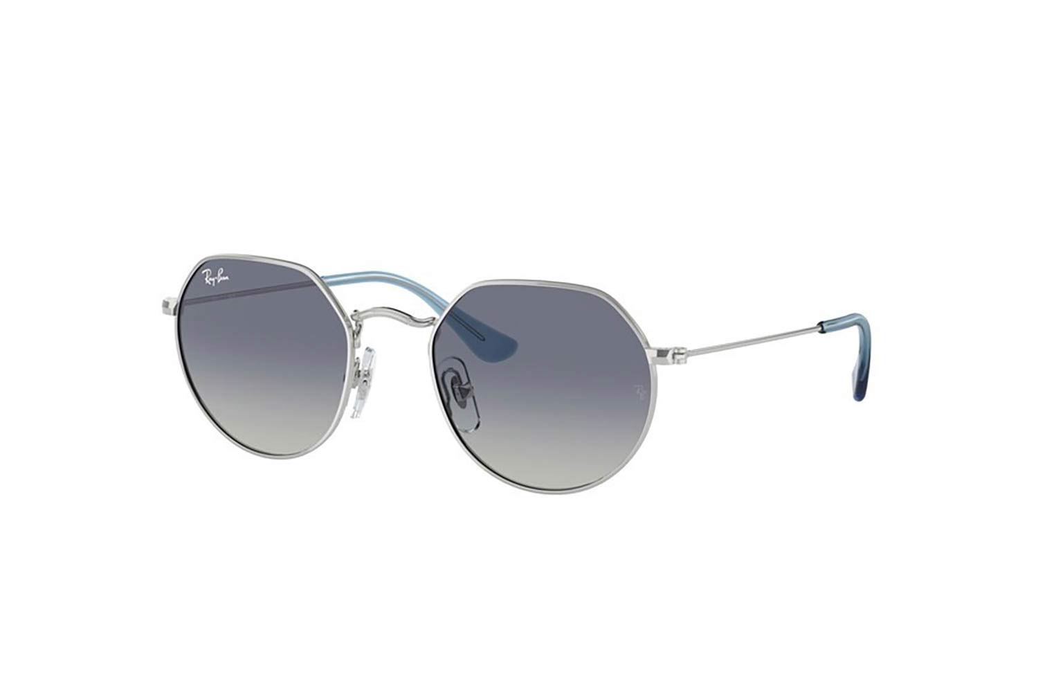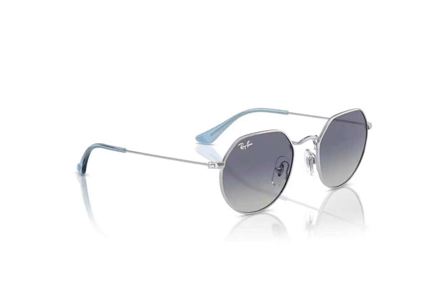 47 Rayban-Junior 9565S JUNIOR JACK 212/4L 47, Ακανόνιστο σκελετός Μεταλλο, Ασημί, Silver Silver, φακοί Γκρι Μπλε polycarbonate - Grey Blue, Unisex, Full Rim, Adjustable Nosepads γυαλιά ηλίου Παιδικό