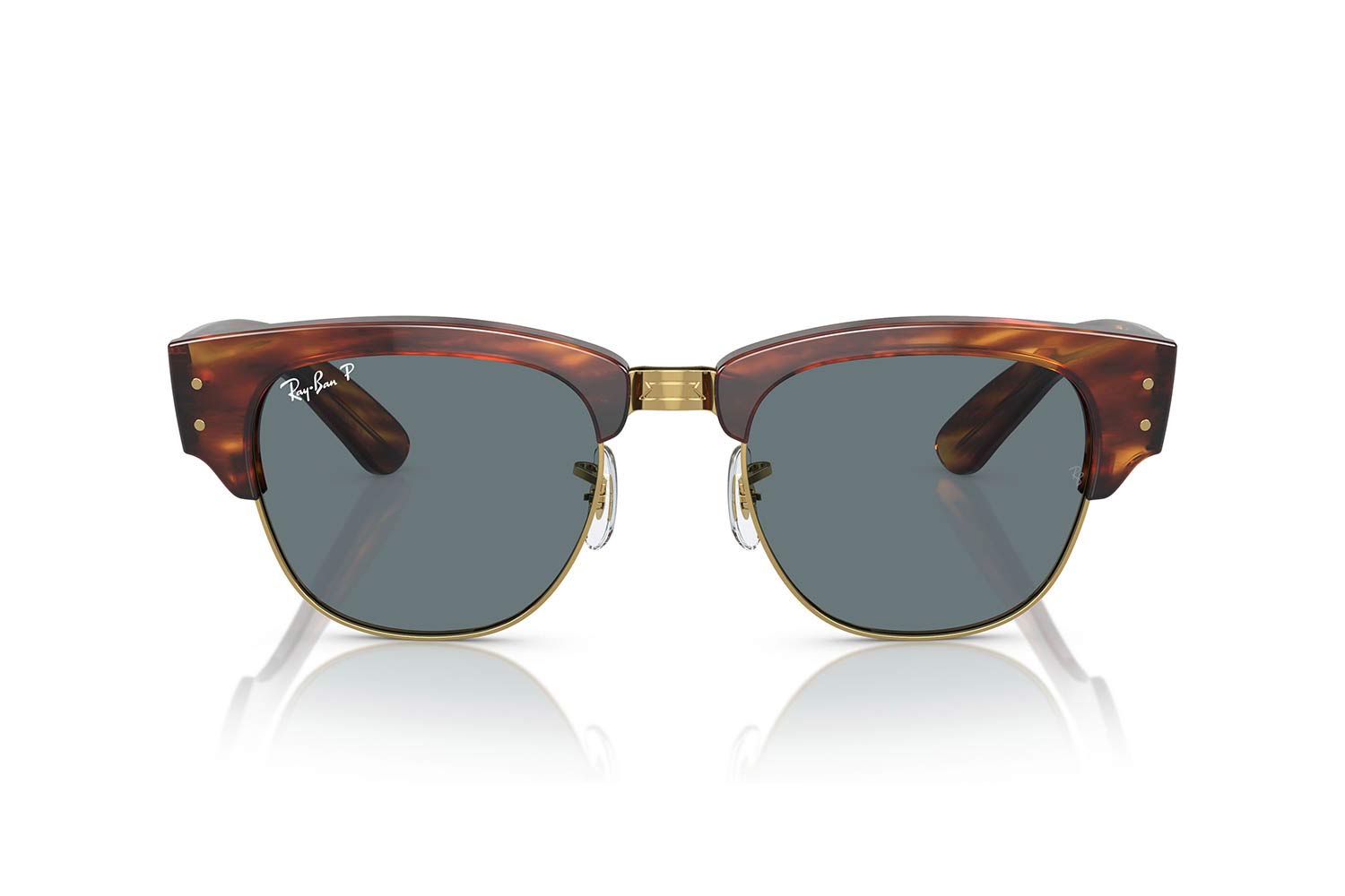 53 Rayban 0316S MEGA CLUBMASTER 954/3R 53, Τετράγωνο σκελετός Acetate, Καφέ, Brown Striped Havana, φακοί Σκούρο Μπλε Διαφανές X - Dark Blue, polarized, Unisex, Full Rim, High Bridge Fit γυαλιά ηλίου Unisex