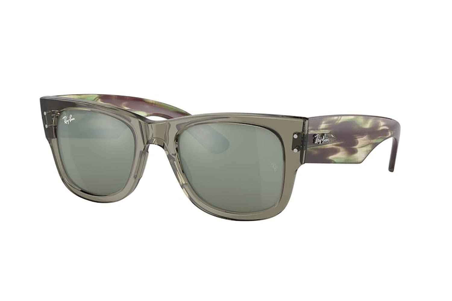 Rayban 0840S MEGA WAYFARER 66355C 51 Frame acetate green TRANSPARENT GREEN, φακοί grey mirror crystal standard 3p Base 6 Trans:11.7, Unisex, Full Rim γυαλιά ηλίου