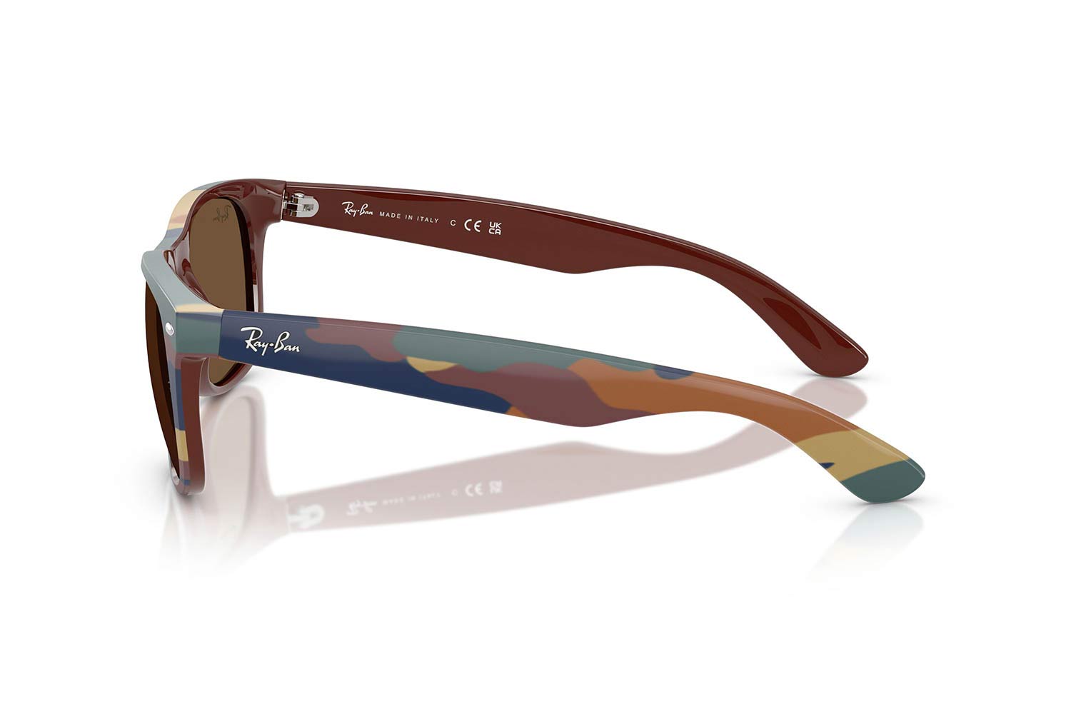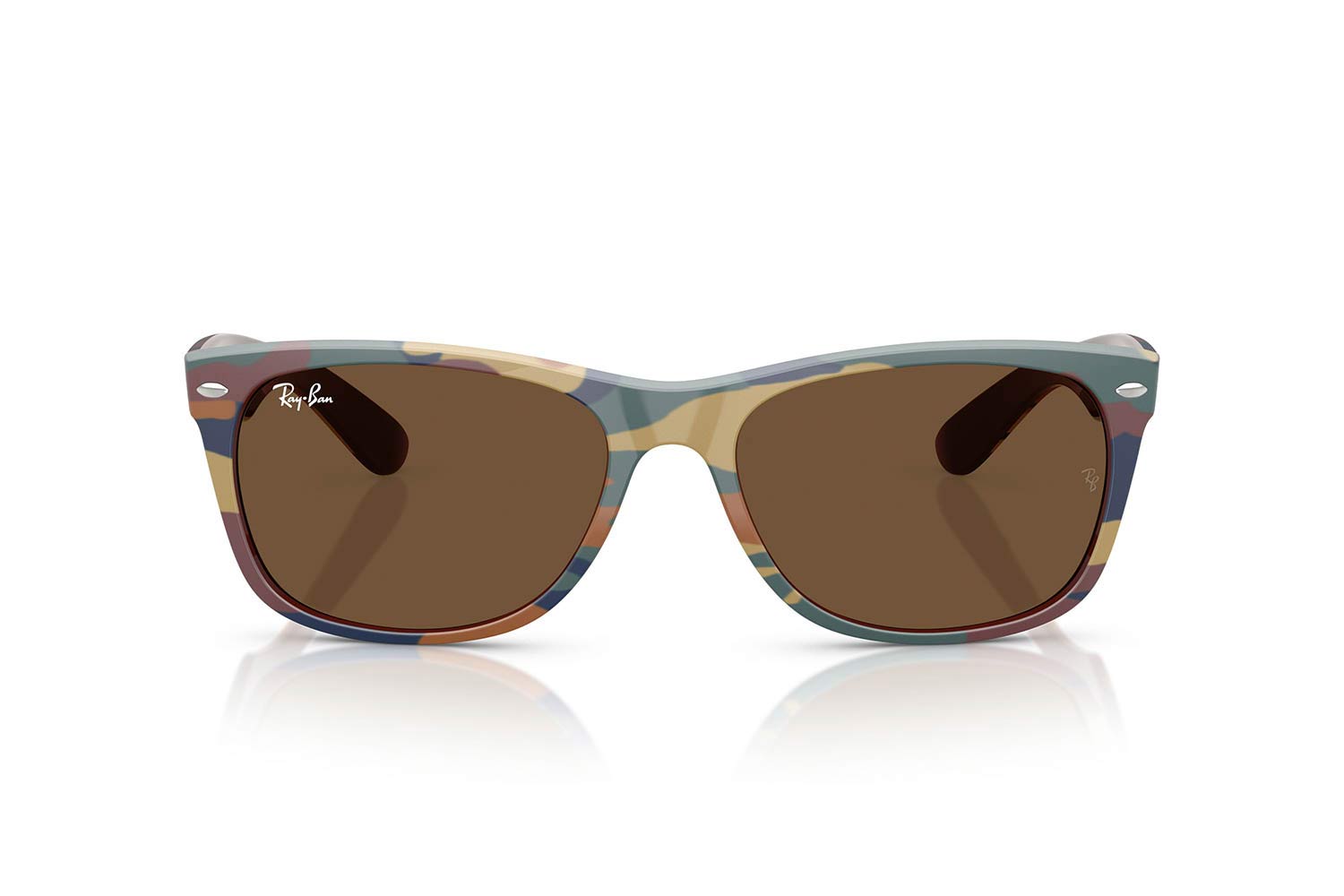 55 Rayban 2132 NEW WAYFARER 682533 55, Τετράγωνο σκελετός Nylon, Καφέ, Brown Brown/Blue Camouflage, φακοί Σκούρο Καφέ Διαφανές - Dark Brown, Unisex, half rim - nylor, High Bridge Fit γυαλιά ηλίου Unisex