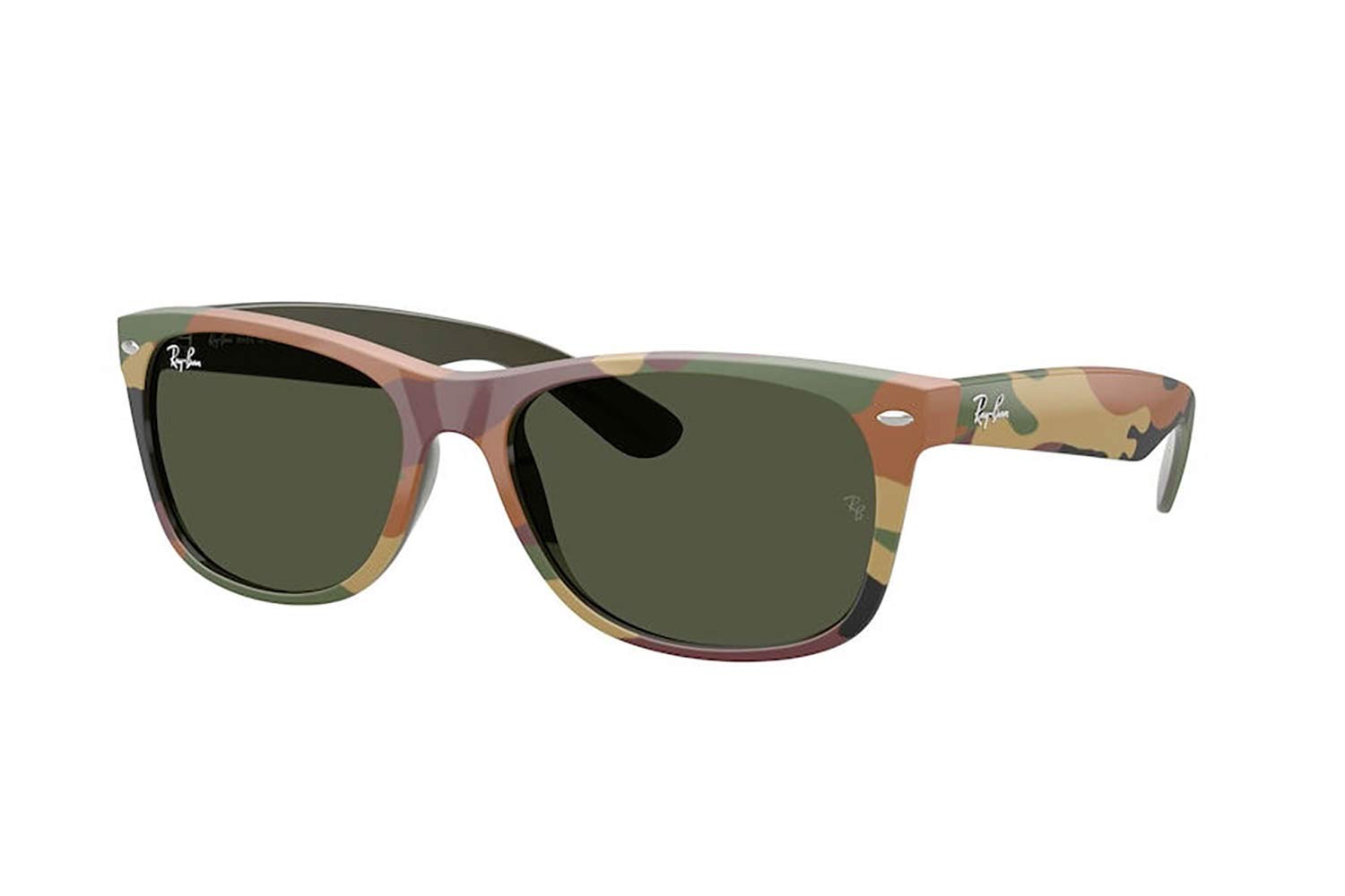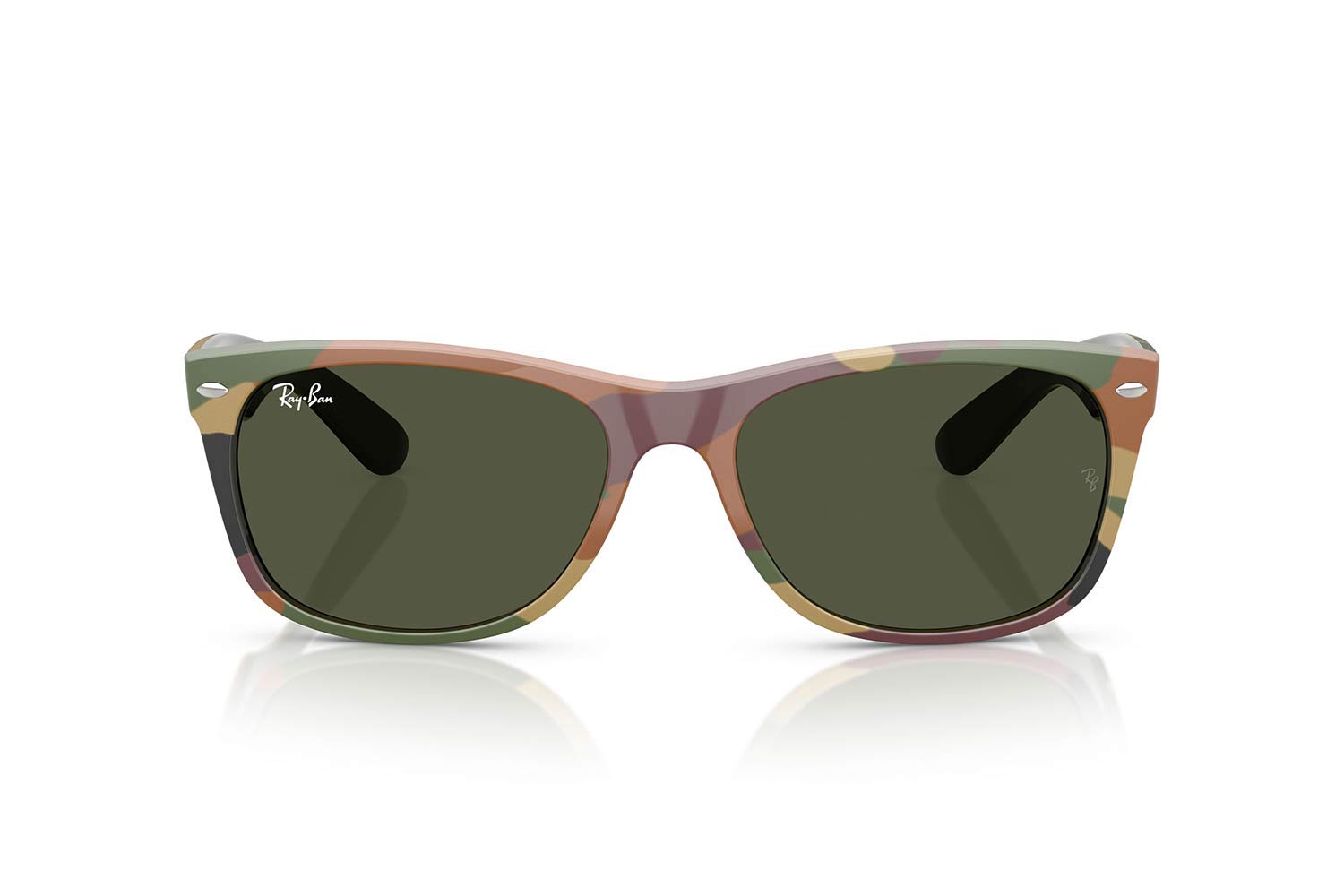 55 Rayban 2132 NEW WAYFARER 682331 55, Τετράγωνο σκελετός Nylon, Πράσινο, Green Green/Green Camouflage, φακοί Πράσινο Διαφανές - Green, Unisex, half rim - nylor, High Bridge Fit γυαλιά ηλίου Unisex