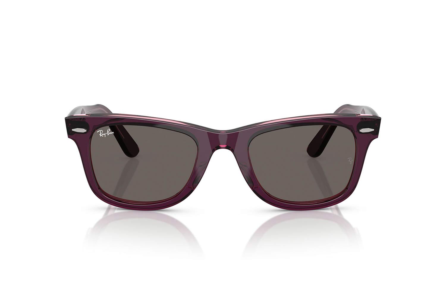 50 Rayban 2140 WAYFARER 1447B1 50, Τετράγωνο σκελετός Acetate, Βιολετί, Violet Violet On Transparent Pink, φακοί Σκούρο Γκρι Διαφανές - Dark Grey, Unisex, Full Rim, High Bridge Fit γυαλιά ηλίου Unisex