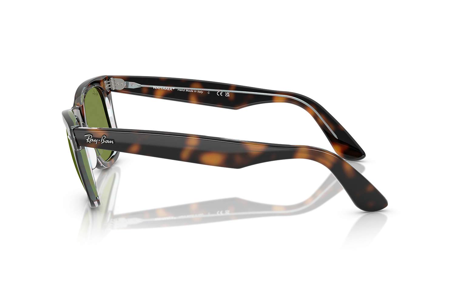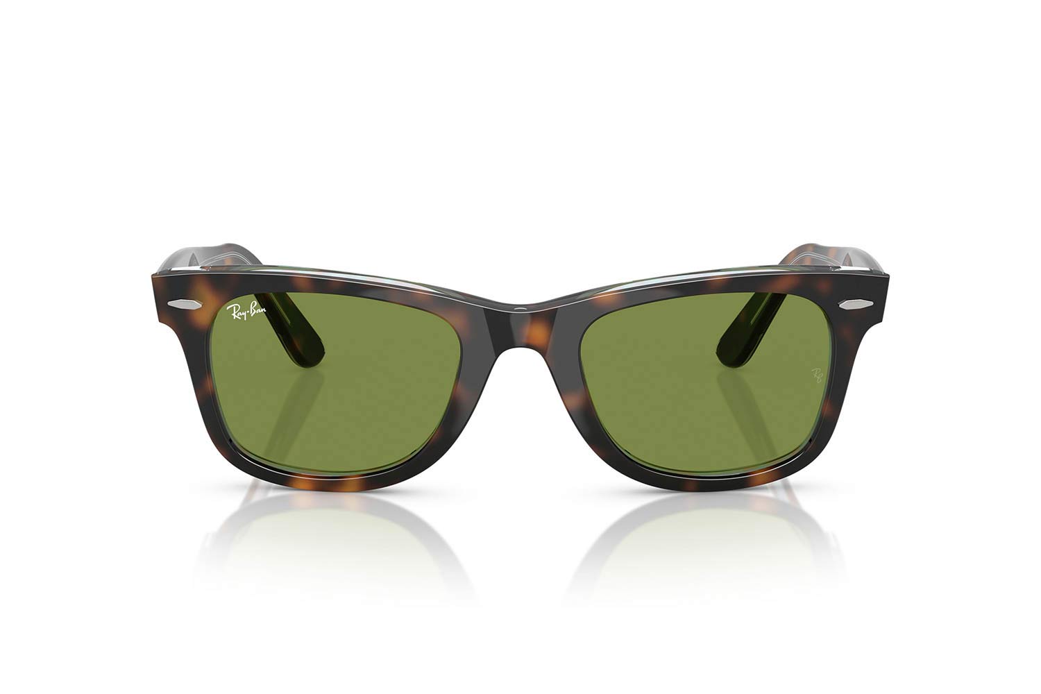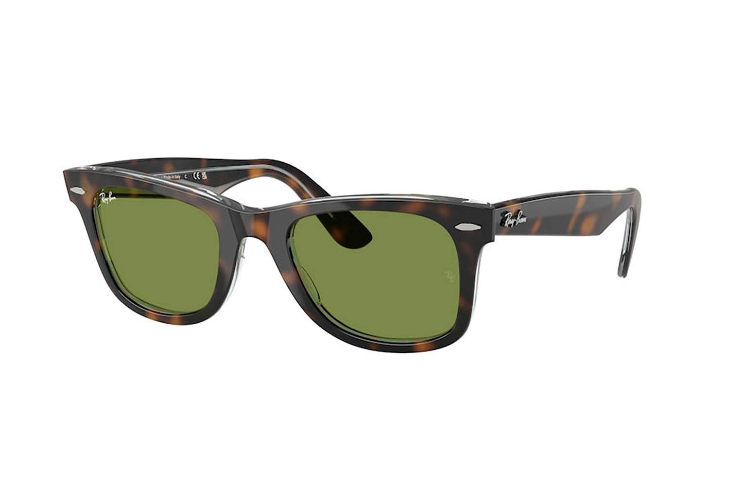 50 Rayban 2140 WAYFARER 14134E 50, Τετράγωνο σκελετός Acetate, Ταρταρούγα, Tortoise Dark Havana On Multicolour, φακοί Πράσινο Διαφανές - Green, Unisex, Full Rim, High Bridge Fit γυαλιά ηλίου Unisex