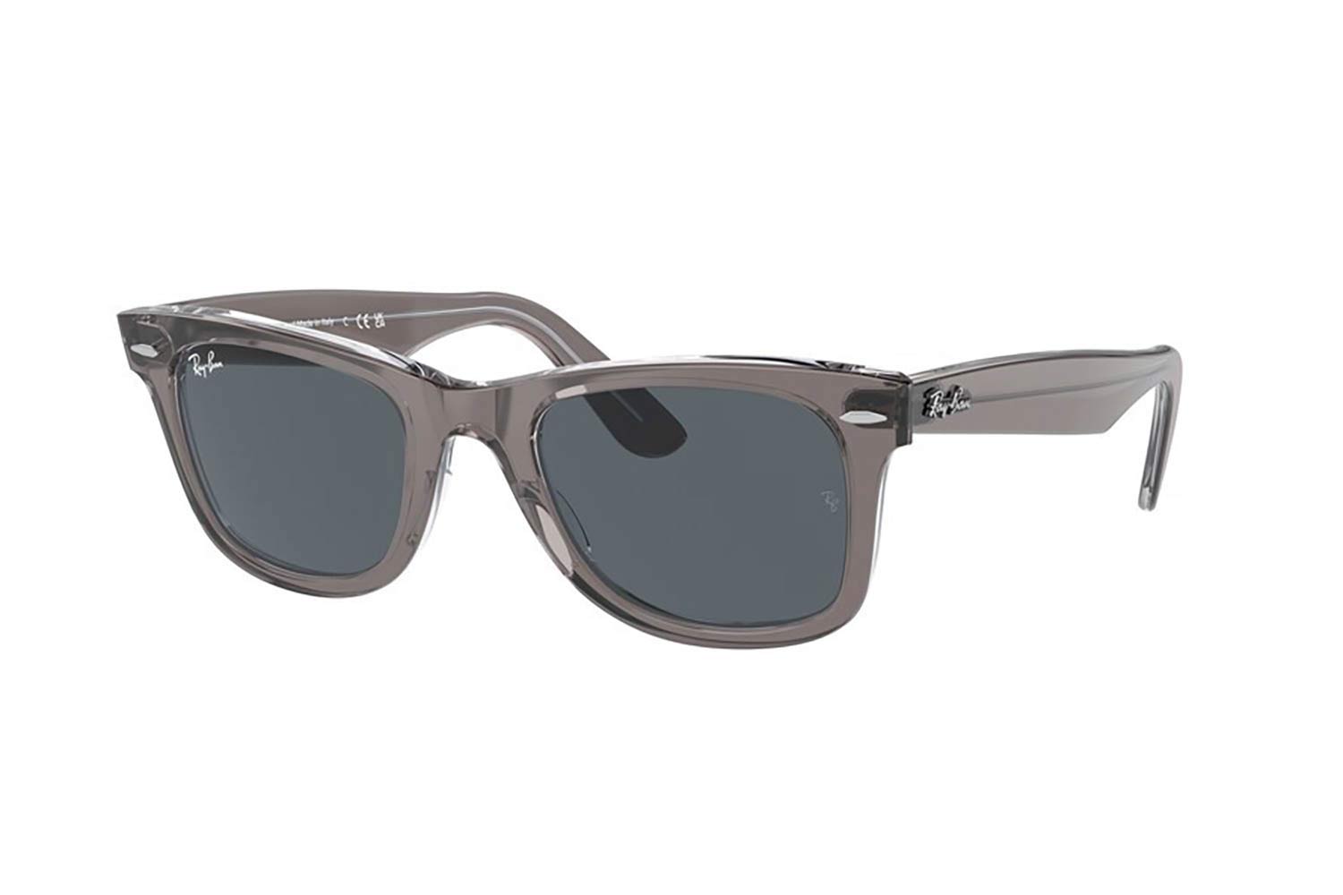 Rayban 2140 WAYFARER 1355R5 50, Τετράγωνο σκελετός Acetate, Γκρι, Grey Grey On Transparent, φακοί Μπλε κρυστάλλινοι Base 6, Unisex, Full Rim, High Bridge Fit γυαλιά ηλίου Unisex
