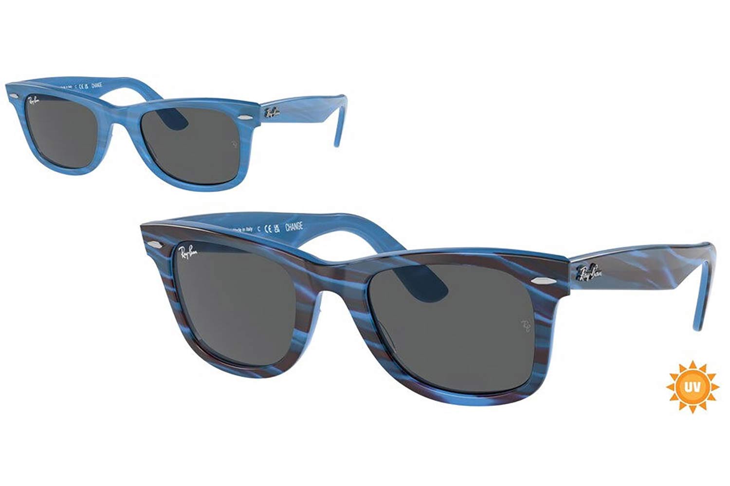 50 Rayban 2140 WAYFARER 1409B1 Change 50, Τετράγωνο σκελετός Acetate, Φωτοχρωμικός σκελετος, Blue Photo Striped Blue, φακοί - Dark Grey, Unisex, Full Rim, High Bridge Fit γυαλιά ηλίου