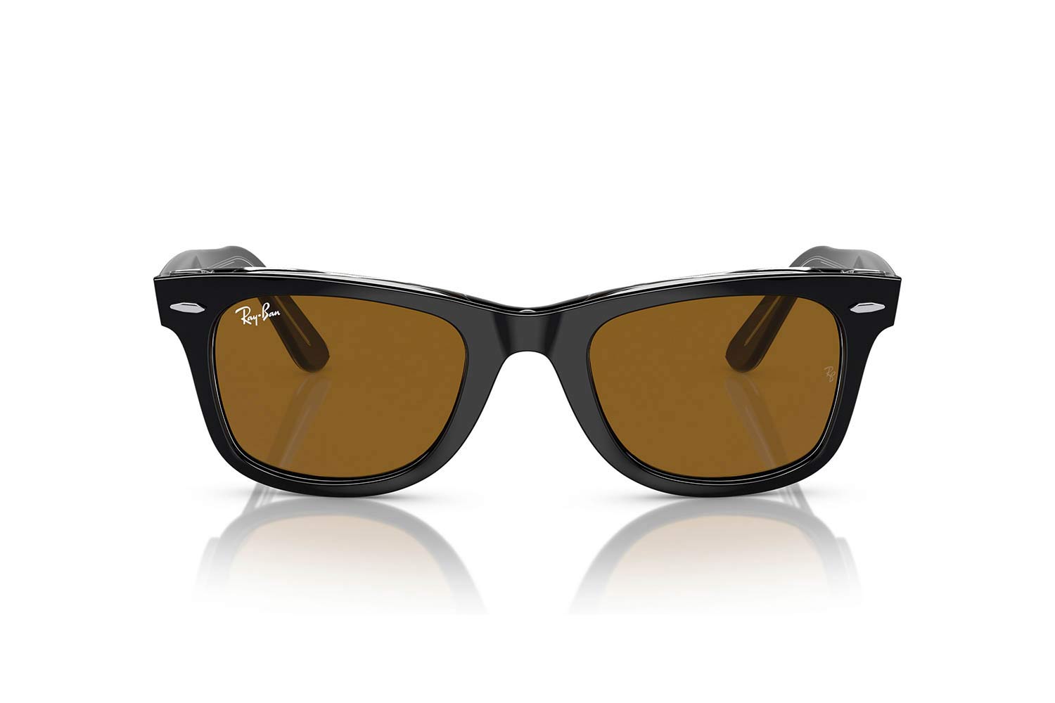 Περιγραφή: 54 Rayban 2140 WAYFARER 129433 54, Τετράγωνο σκελετός Acetate, Μαύρο, Black Black On Transparent, φακοί Καφέ Διαφανές - Brown, Unisex, Full Rim, High Bridge Fit γυαλιά ηλίου Unisex