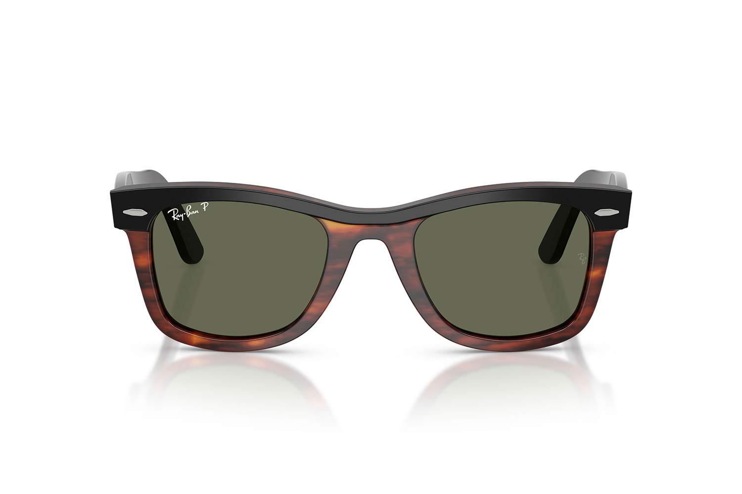 50 Rayban 2240 WAYFARER 144058 50, Τετράγωνο σκελετός Acetate, Μαύρο, Black Black On Havana, φακοί Πολωτικοί Πράσινοι Διαφανές X - Polarized Green, polarized, Unisex, Full Rim, High Bridge Fit γυαλιά ηλίου Unisex