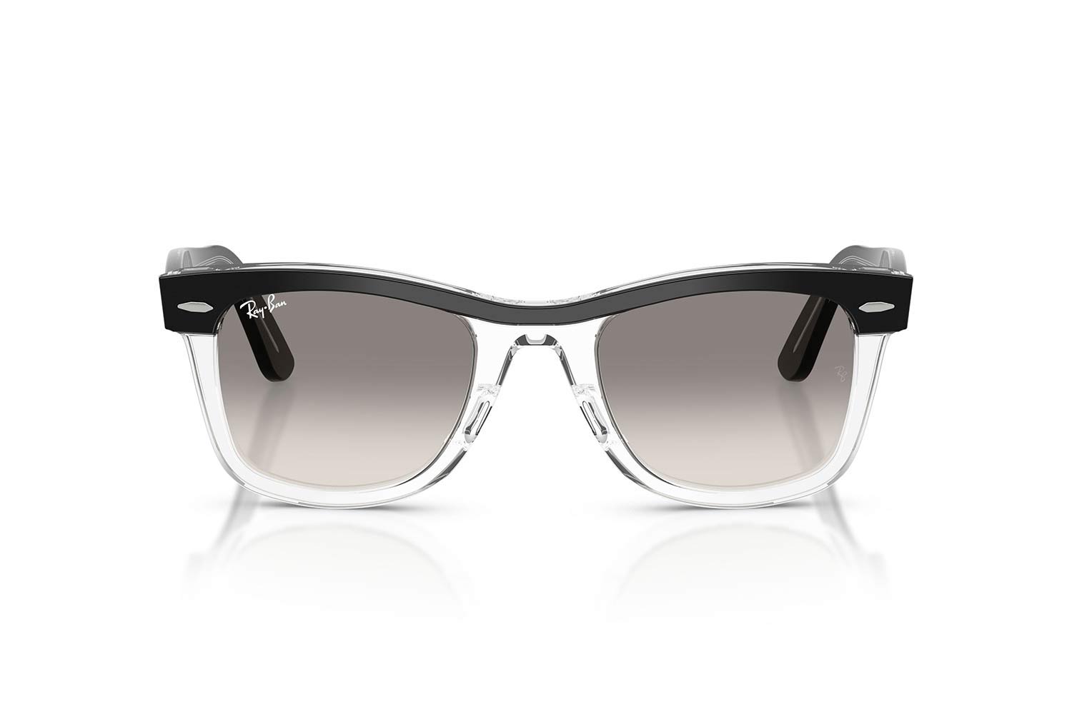 50 Rayban 2240 WAYFARER 129432 50, Τετράγωνο σκελετός Acetate, Μαύρο, Black Black On Transparent, φακοί Διαφανές Ντεγκραντέ Γκρι Διαφανές - Clear Gradient Grey, Unisex, Full Rim, High Bridge Fit γυαλιά ηλίου Unisex