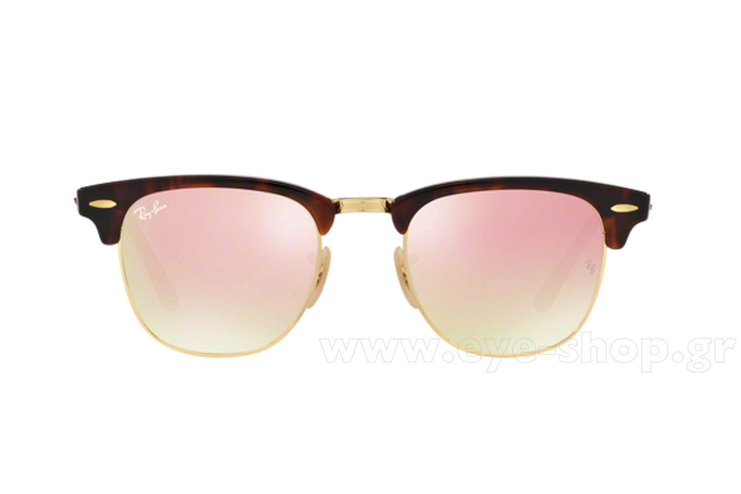 Περιγραφή: Rayban 3016 Clubmaster 990/7O 51 σκελετός Μεταλλο Καφέ Χρυσό, φακοί ροζ καθρέφτης Unisex Full Rim Γυαλιά ηλίου sunglasses