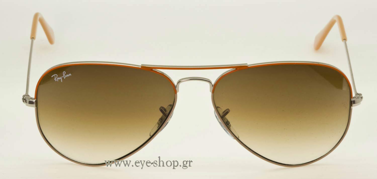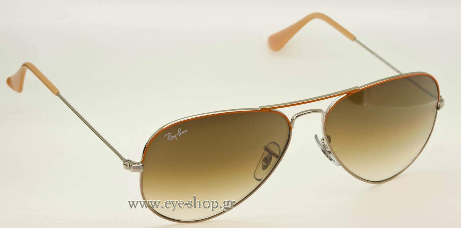 Περιγραφή: Rayban Κλασσικά, Σκελετός πάνω μέρος πορτοκαλί - κάτω μέρος μπεζ, βραχίονες ασημί, φακοί καφέ degradee Γυαλιά ηλίου sunglasses