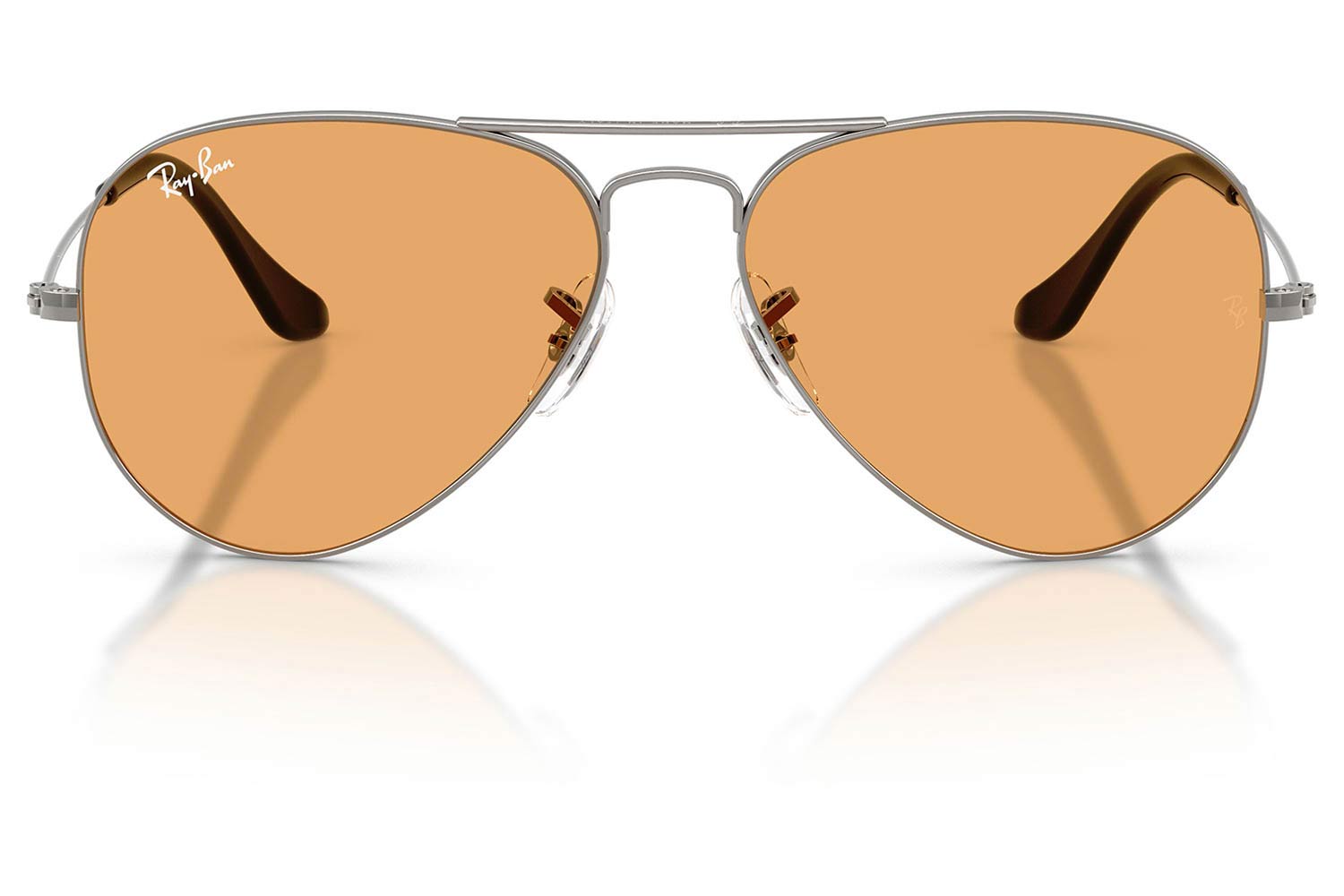 58 Rayban 3025 AVIATOR 004/33 58, Aviator σκελετός Μεταλλο, Γκρι, Grey Gunmetal, φακοί Πορτοκαλί Διαφανές - Orange, Unisex, Full Rim, Adjustable Nosepads γυαλιά ηλίου Unisex