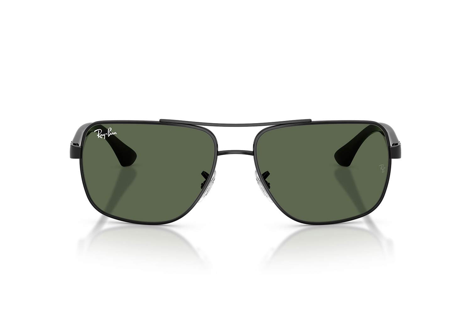 60 Rayban 3483 RB3483 002-71 60, Τετράγωνο σκελετός Μεταλλο, Μαύρο, Black Black, φακοί Σκούρο Πράσινο Πολυανθρακικό - Dark Green, Ανδρικό, Full Rim, Adjustable Nosepads γυαλιά ηλίου Ανδρικό