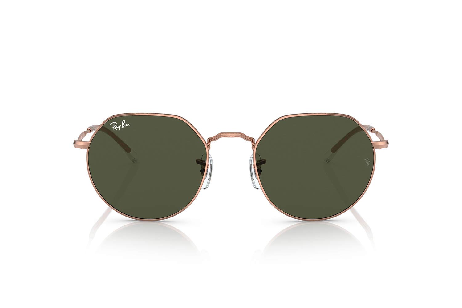 53 Rayban 3565 JACK 920231 53, Ακανόνιστο σκελετός Μεταλλο, Χρυσό, Gold Rose Gold, φακοί Πράσινο Διαφανές - Green, Unisex, Full Rim, Adjustable Nosepads γυαλιά ηλίου Unisex