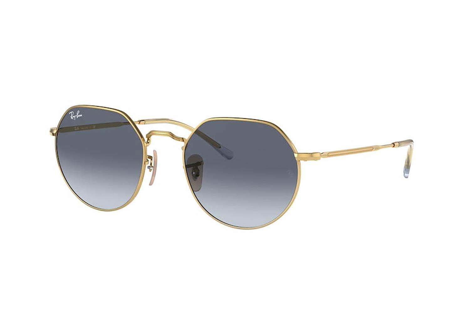 55 Rayban 3565 JACK 001/86 55, Ακανόνιστο σκελετός Μεταλλο, Χρυσό, Gold Arista Gold, φακοί Μπλε/Γκρι Διαφανές - Blue/Grey, Unisex, Full Rim, Adjustable Nosepads γυαλιά ηλίου Unisex