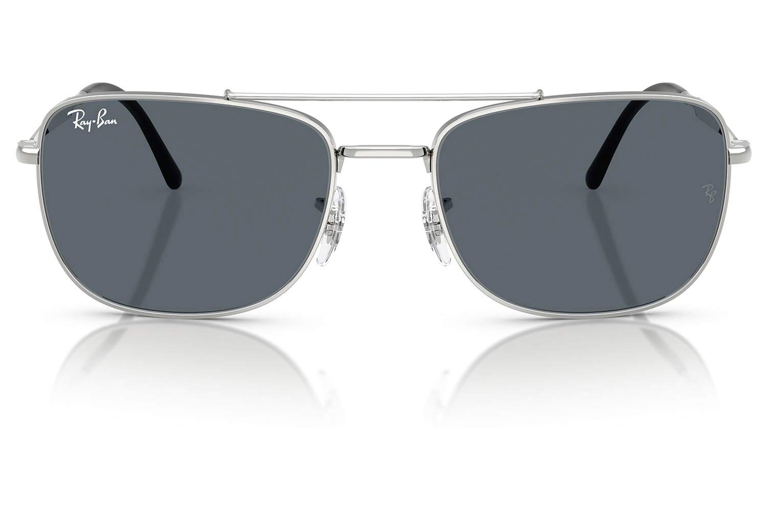62 Rayban 3755 003/R5 62, Τετράγωνο σκελετός Μεταλλο, Ασημί, Silver Silver, φακοί Μπλε Διαφανές - Blue, Unisex, Full Rim, Adjustable Nosepads γυαλιά ηλίου Unisex