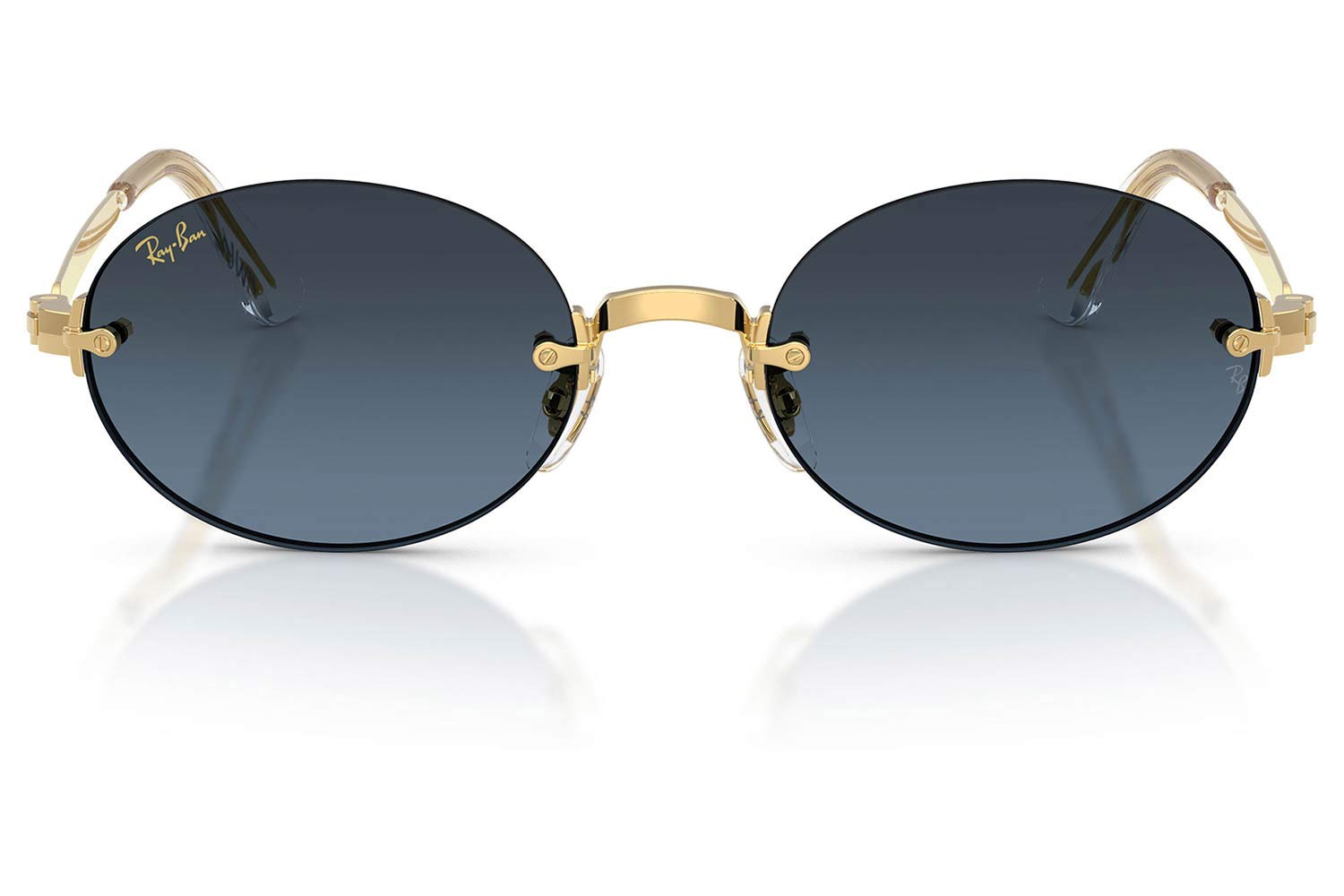 Rayban 3929 001/S2 54, Oval σκελετός Μεταλλο, Χρυσό, Gold Arista Gold, φακοί Μπλε Ντεγκραντέ Σκούρο Γκρι Βιολογικό Πολυαμίδιο - Blue Gradient Dark Grey, Unisex, Rimless, Adjustable Nosepads γυαλιά ηλίου Unisex| Άλλα διαθέσιμα χρώματα | |||||||||||||||