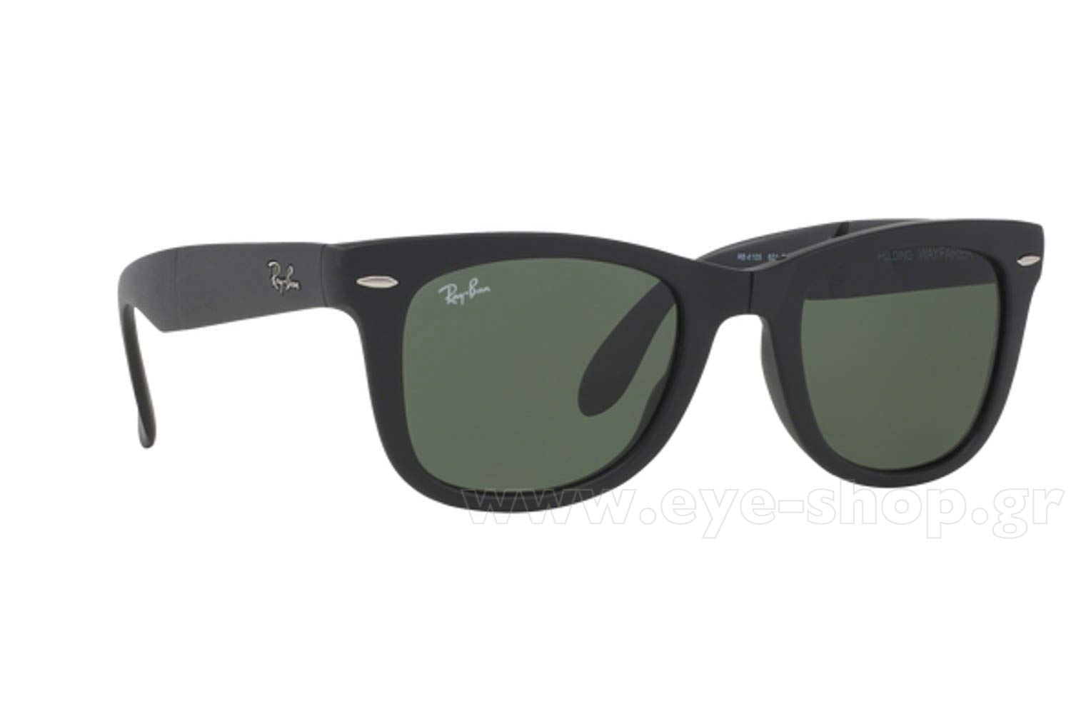 RayBan 4105 Folding Wayfarer 601S Folding 50 Frame acetate Mαύρο ματ, φακοί g15 κρυστάλλινοι, Ανδρικό, Full Rim γυαλιά ηλίου