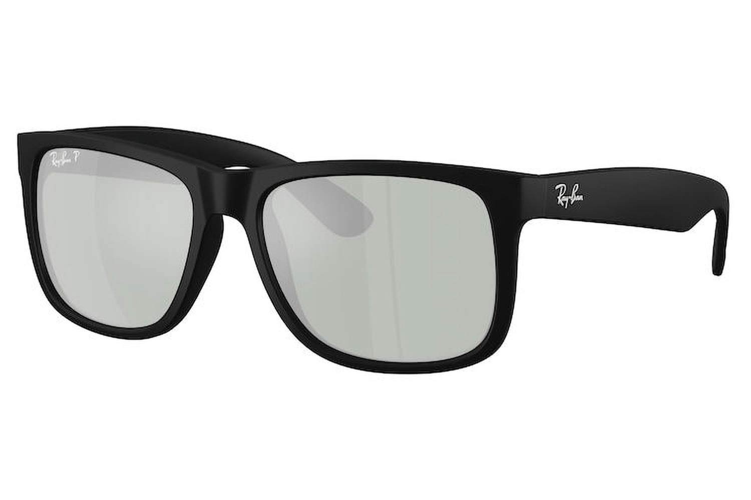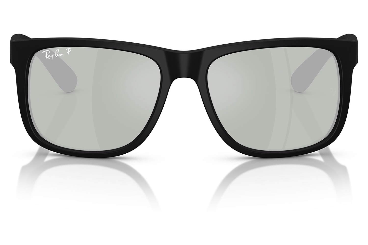 Περιγραφή: 51 Rayban 4165 JUSTIN 622/Y4 51, Τετράγωνο σκελετός Nylon, Μαύρο, Black Rubber Black, φακοί Πράσινος καθρέφτης ασημένιος polarized Mirror Silver Polarised, polarized, Ανδρικό, Full Rim, High Bridge Fit γυαλιά ηλίου Ανδρικό