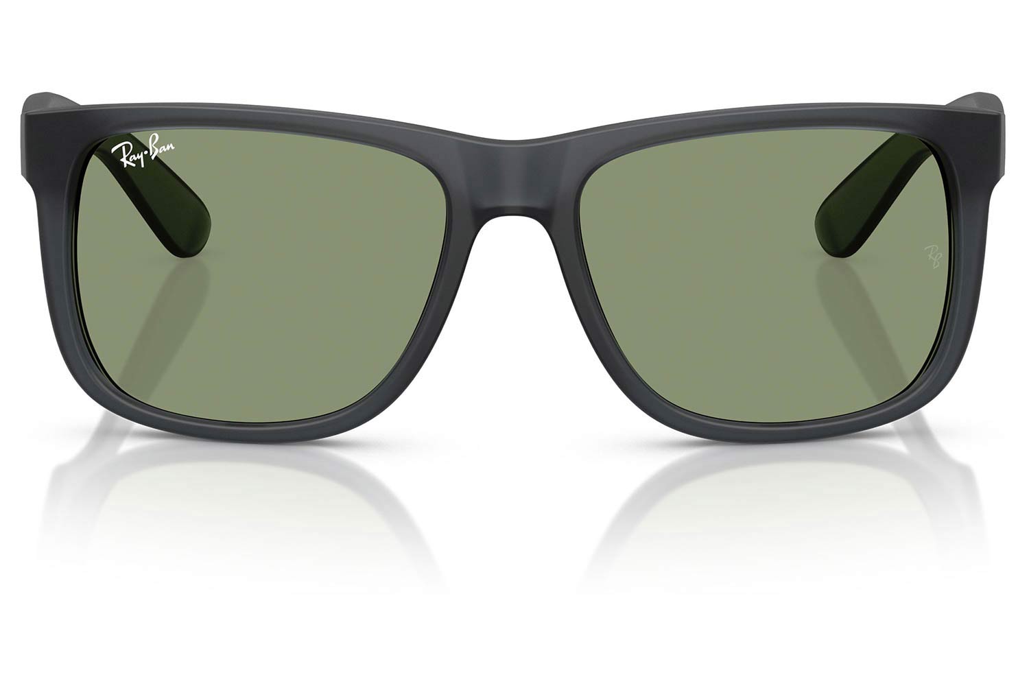 Rayban 4165 JUSTIN 687382 51, Τετράγωνο σκελετός Nylon, Γκρι, Grey Opal Grey, φακοί Πράσινο Πολυανθρακικό - Green, Ανδρικό, Full Rim, High Bridge Fit γυαλιά ηλίου Ανδρικό